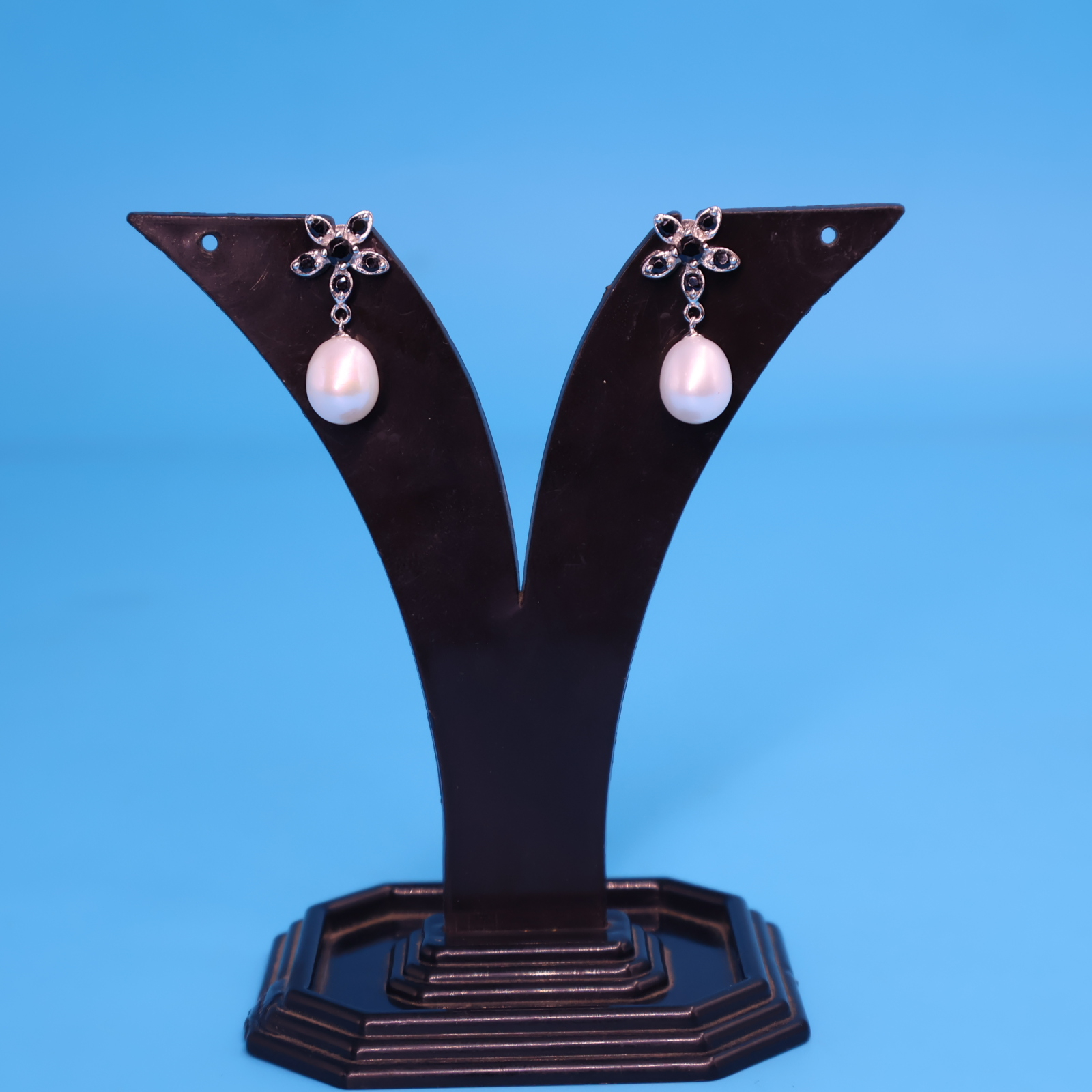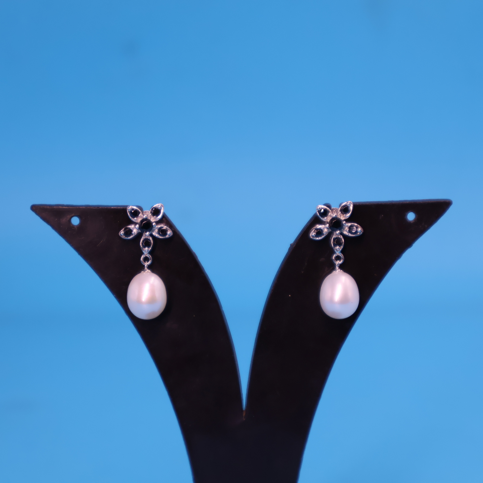 Be the first to review “black Stone Silver Pearl Earrings”