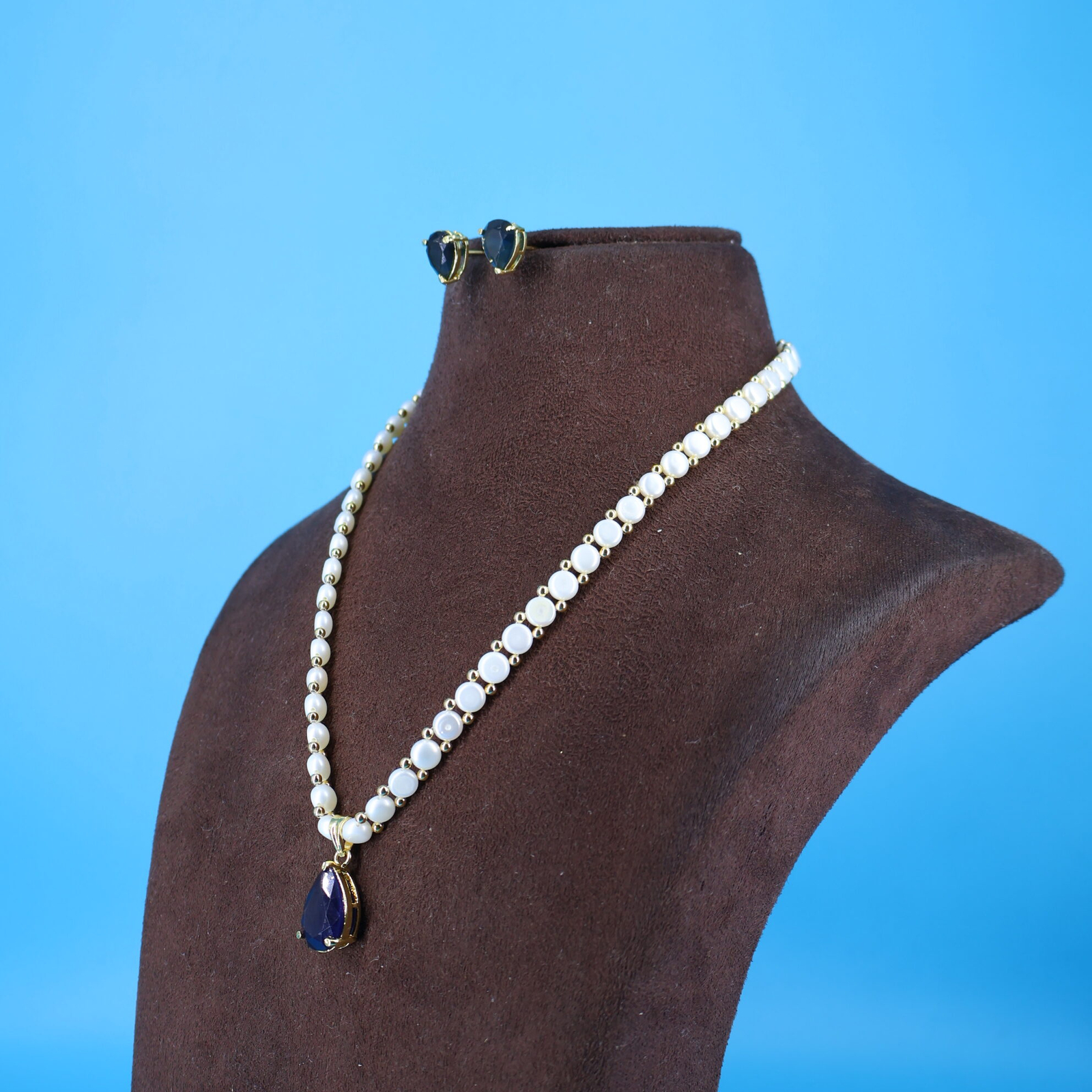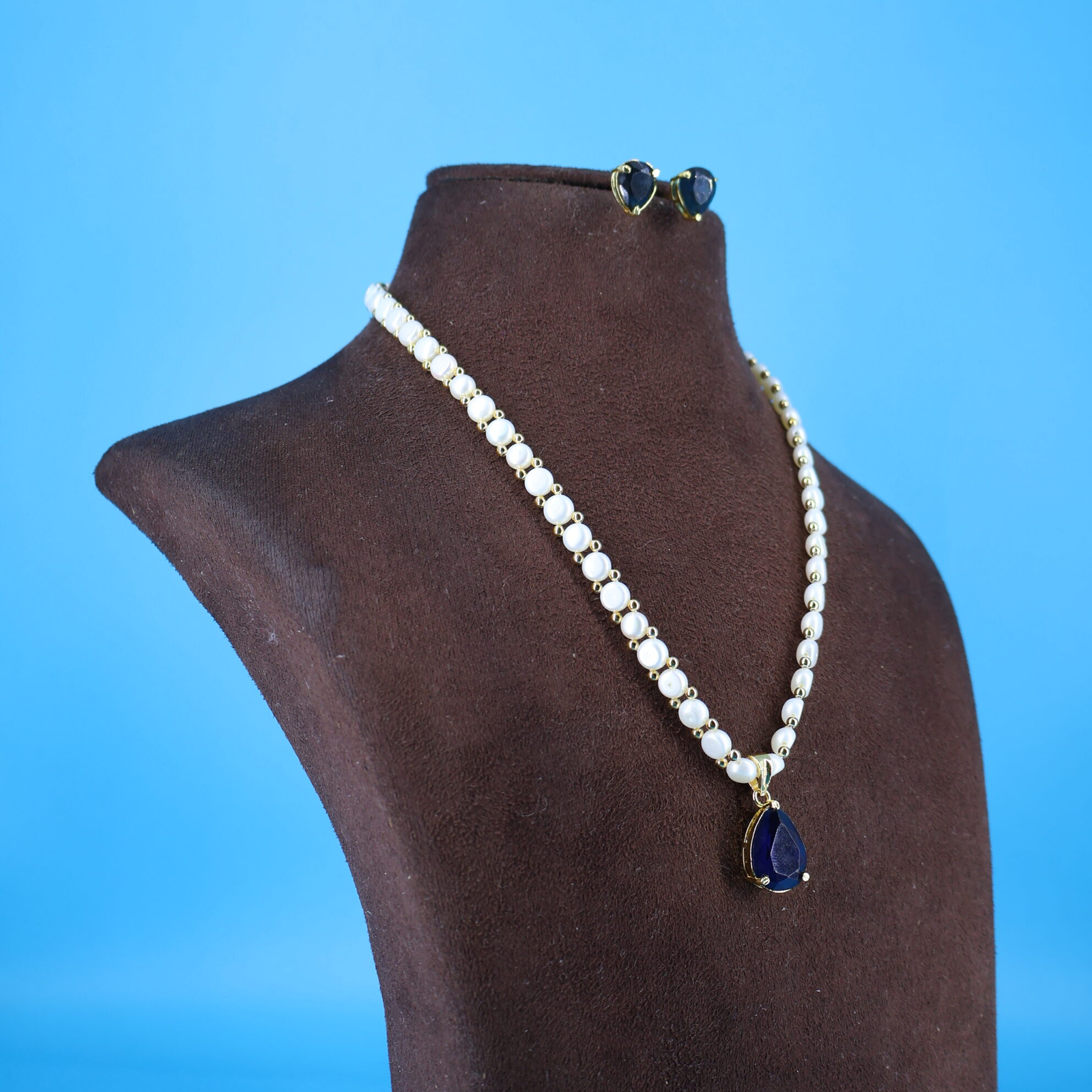 Be the first to review “Blue Pendant Button Pearl Necklace Sets”