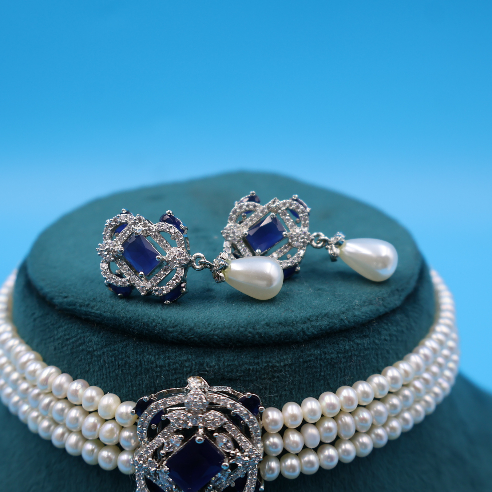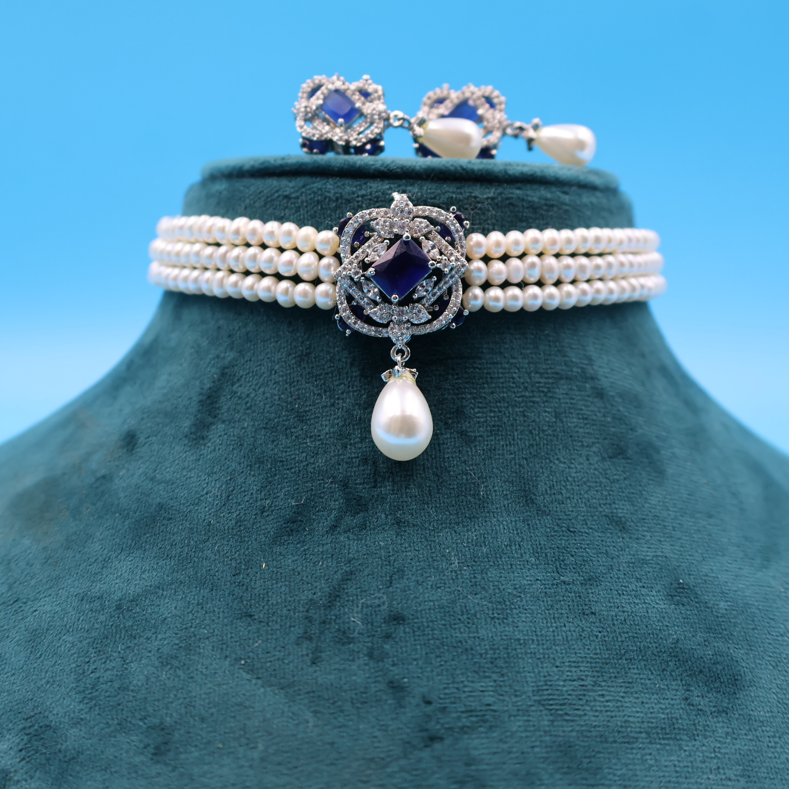 Be the first to review “CZ Blue Sapphire Pearl Choker Necklace” Cancel reply