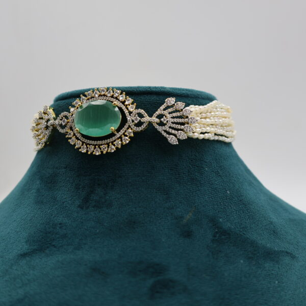 CZ Emerald Pendant Pearl Choker