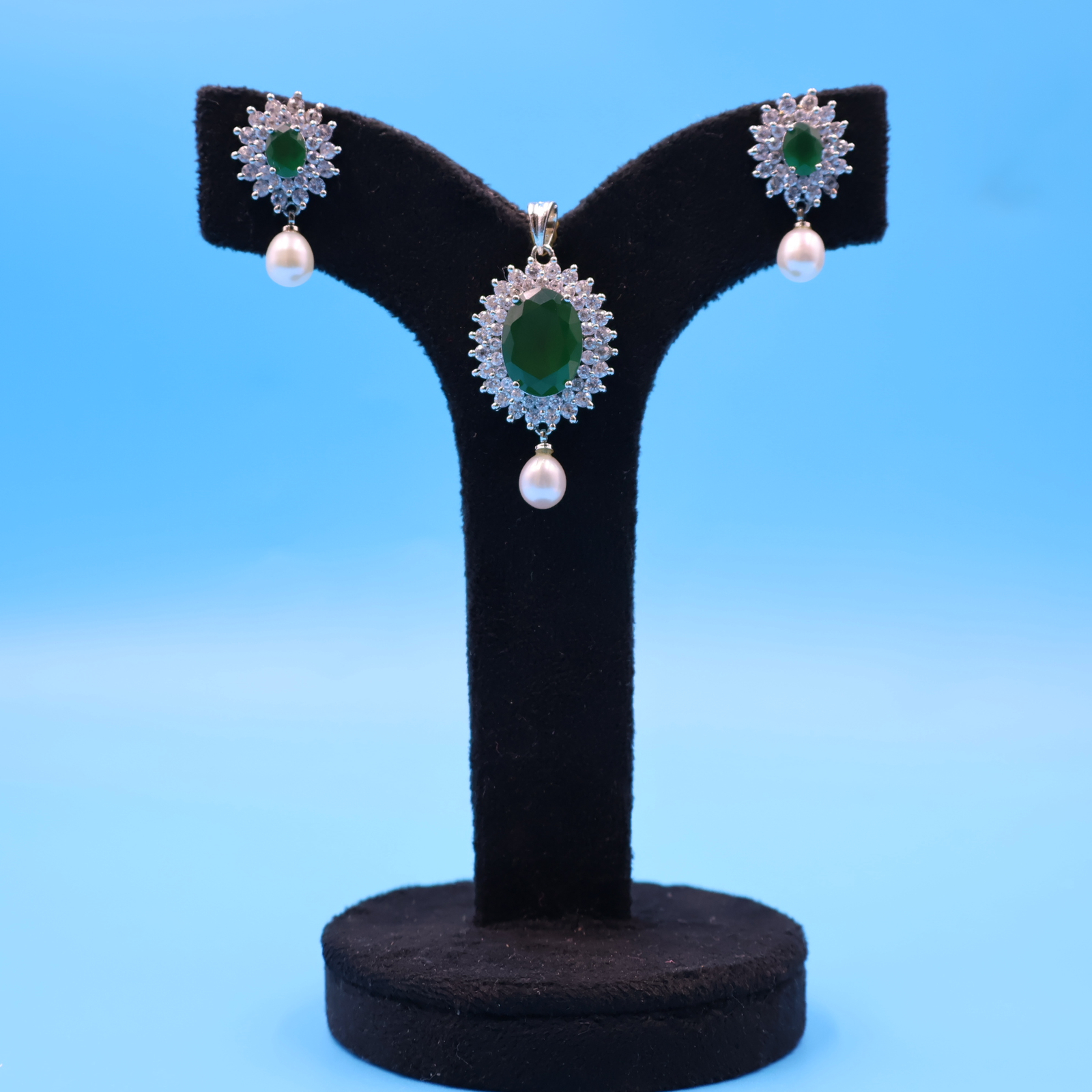 Be the first to review “CZ Emerald Pendant With earrings” Cancel reply