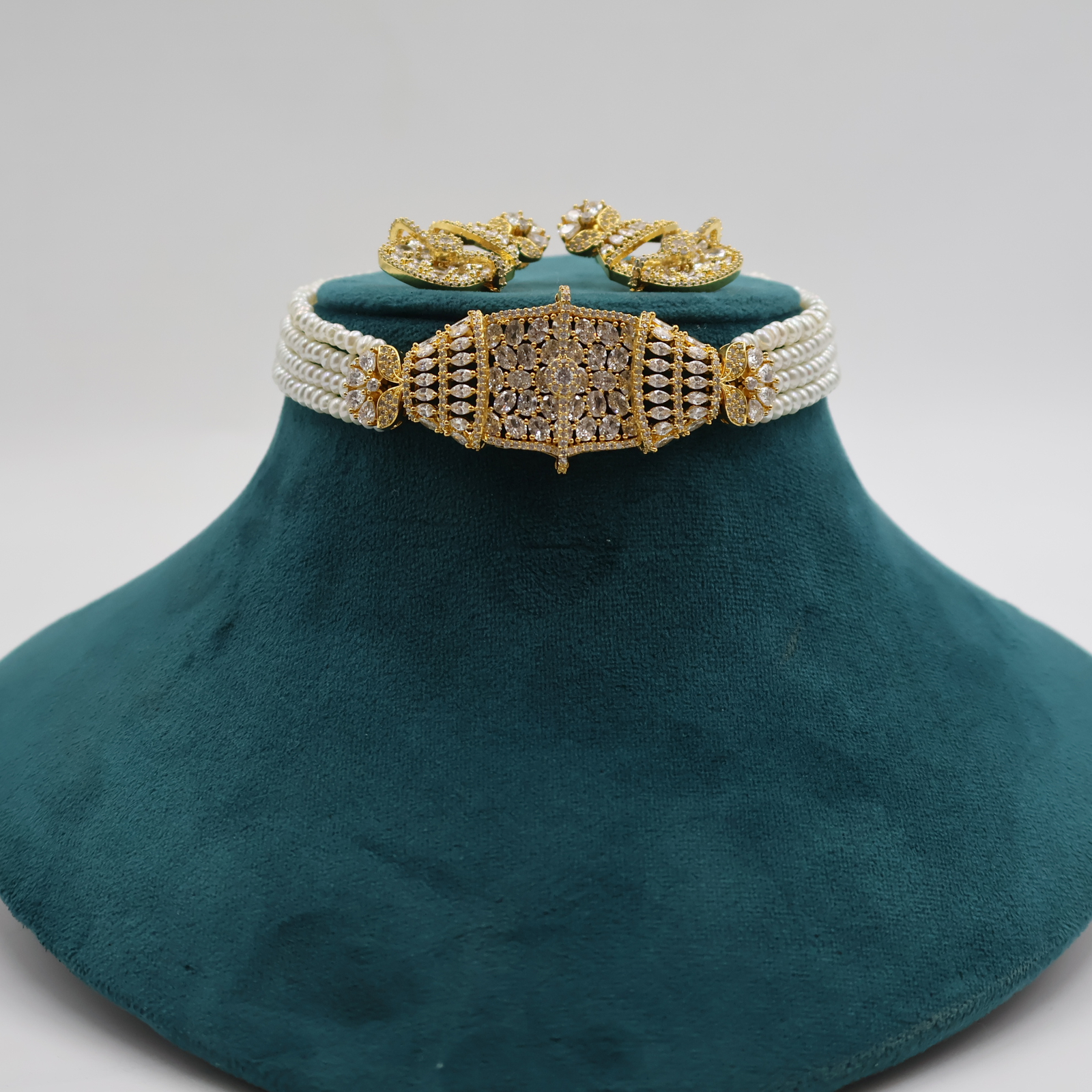 Be the first to review “CZ Pendant Pearl Choker Necklace Sets”