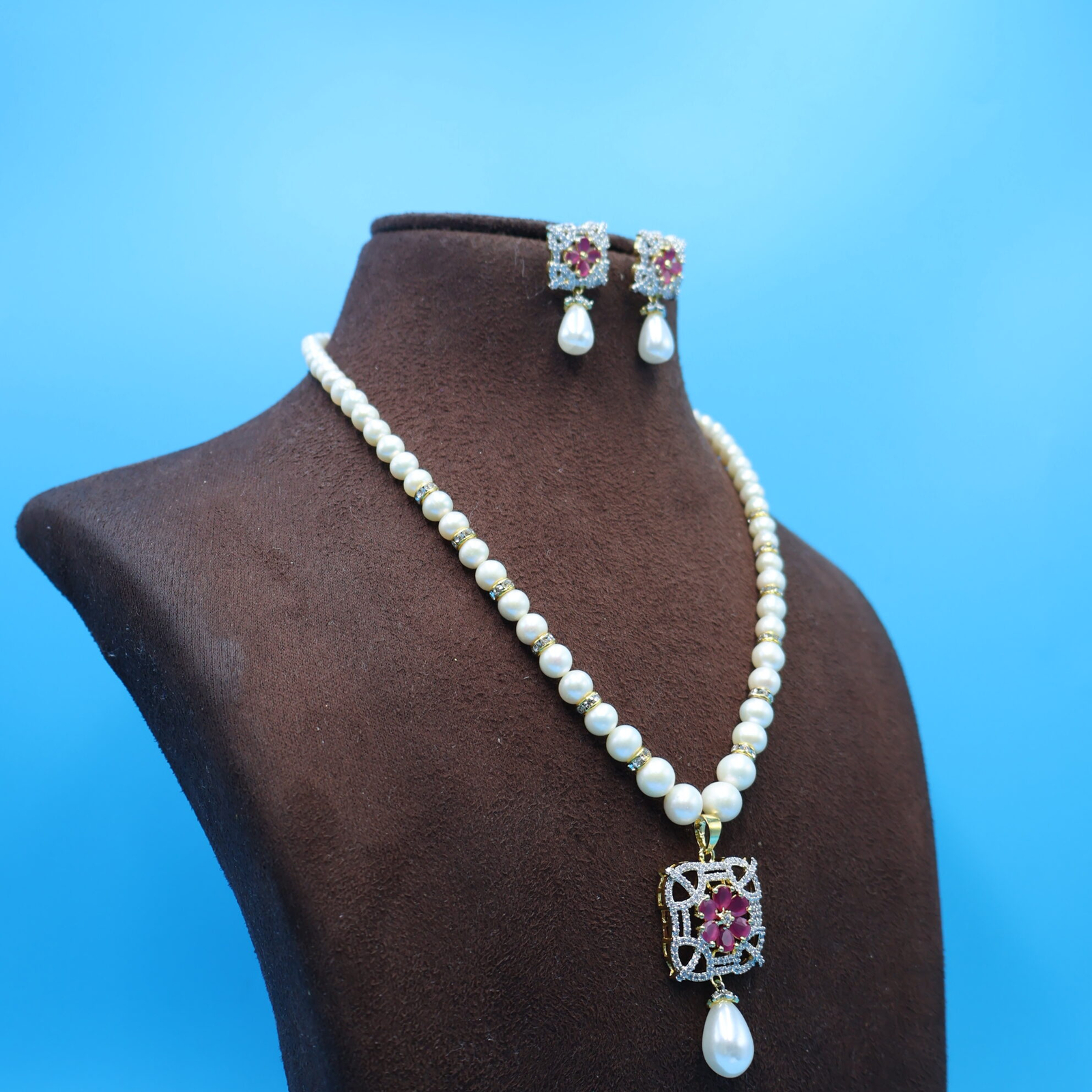Be the first to review “CZ Pendant Pearl Necklace Set”