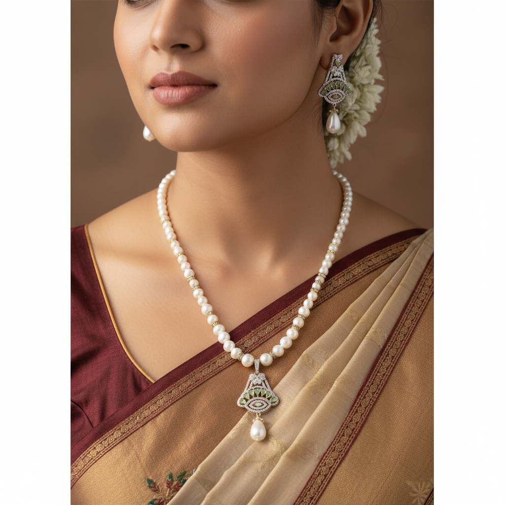 Be the first to review “CZ Pendant Pearl Necklace Set”