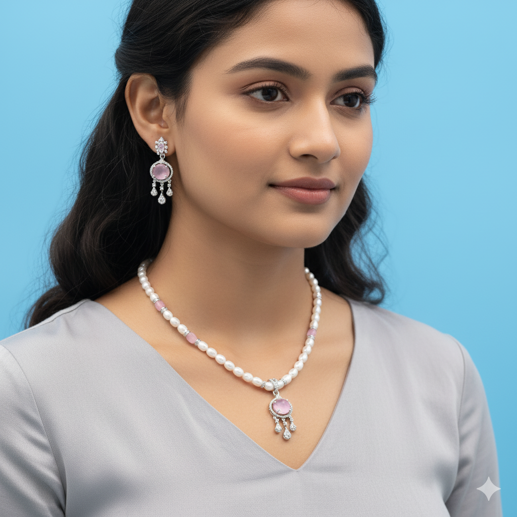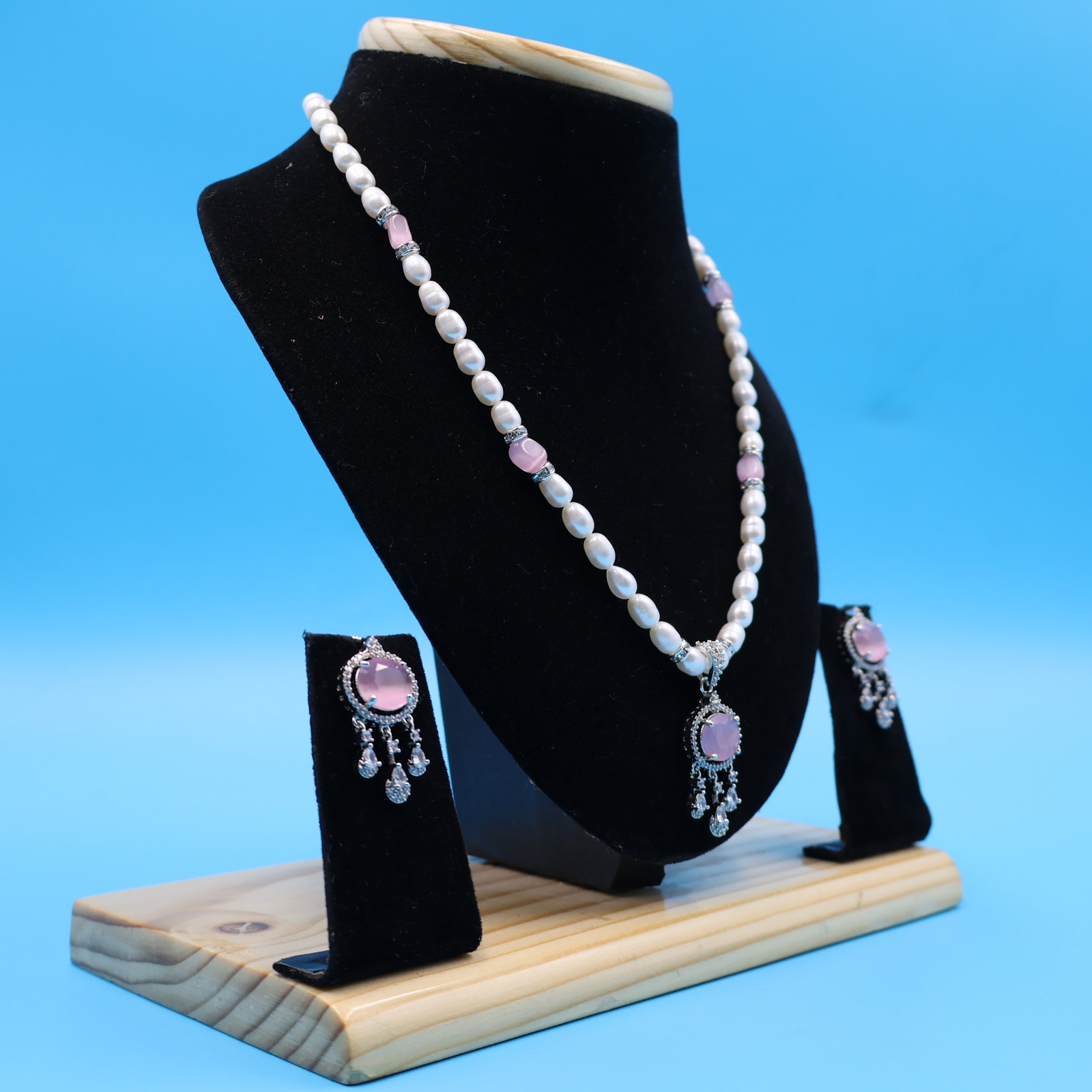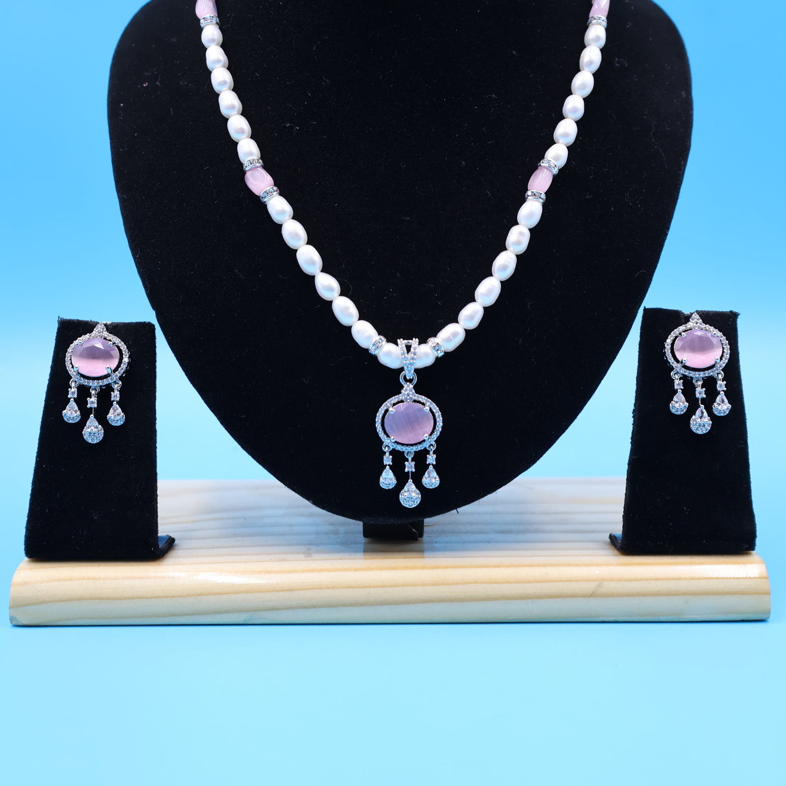 Be the first to review “CZ Pink Stone Pendant pearl Necklace”