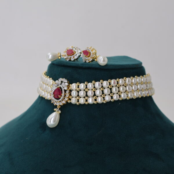 Be the first to review “CZ Ruby Pearl Choker Necklace”