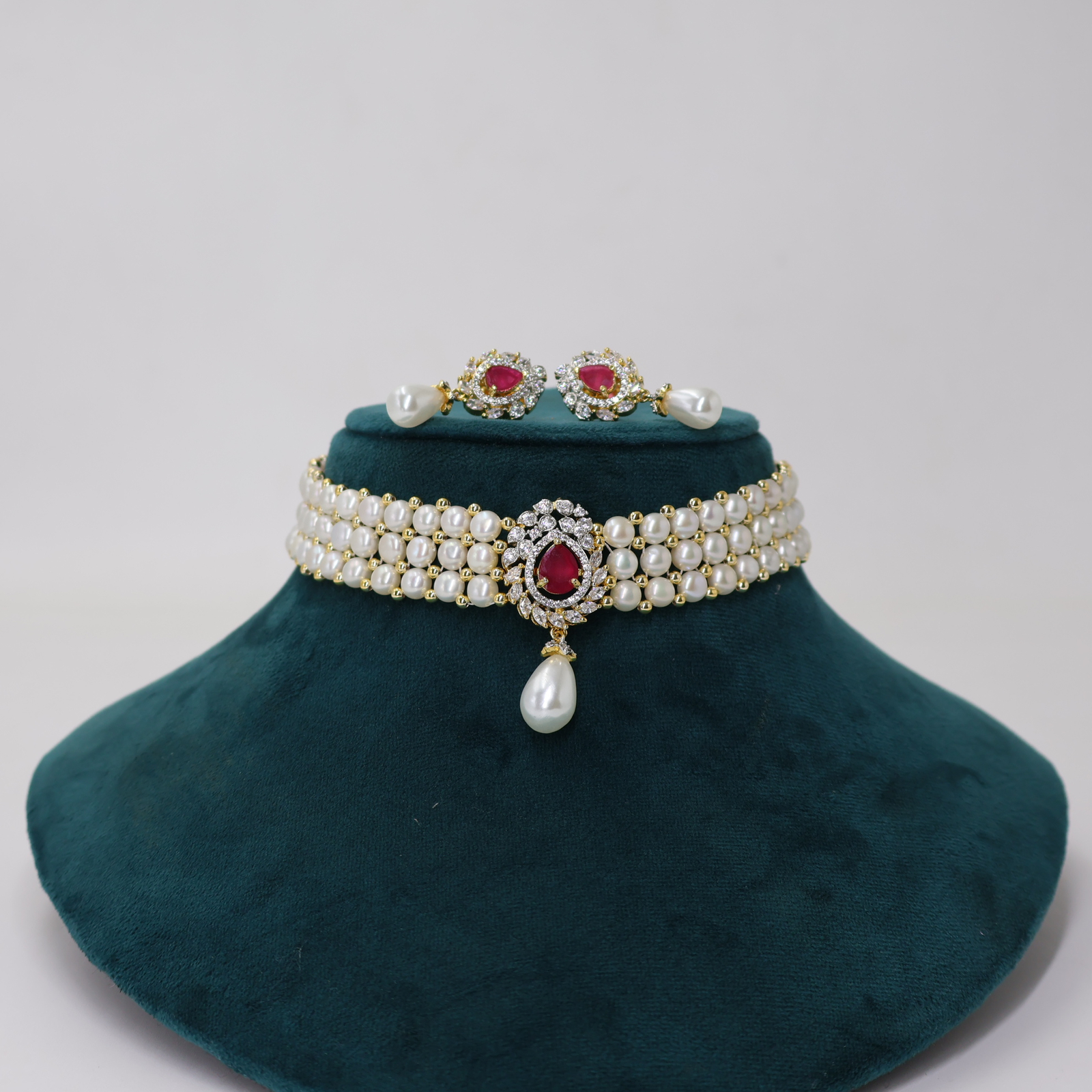 Be the first to review “CZ Ruby Pearl Choker Necklace”