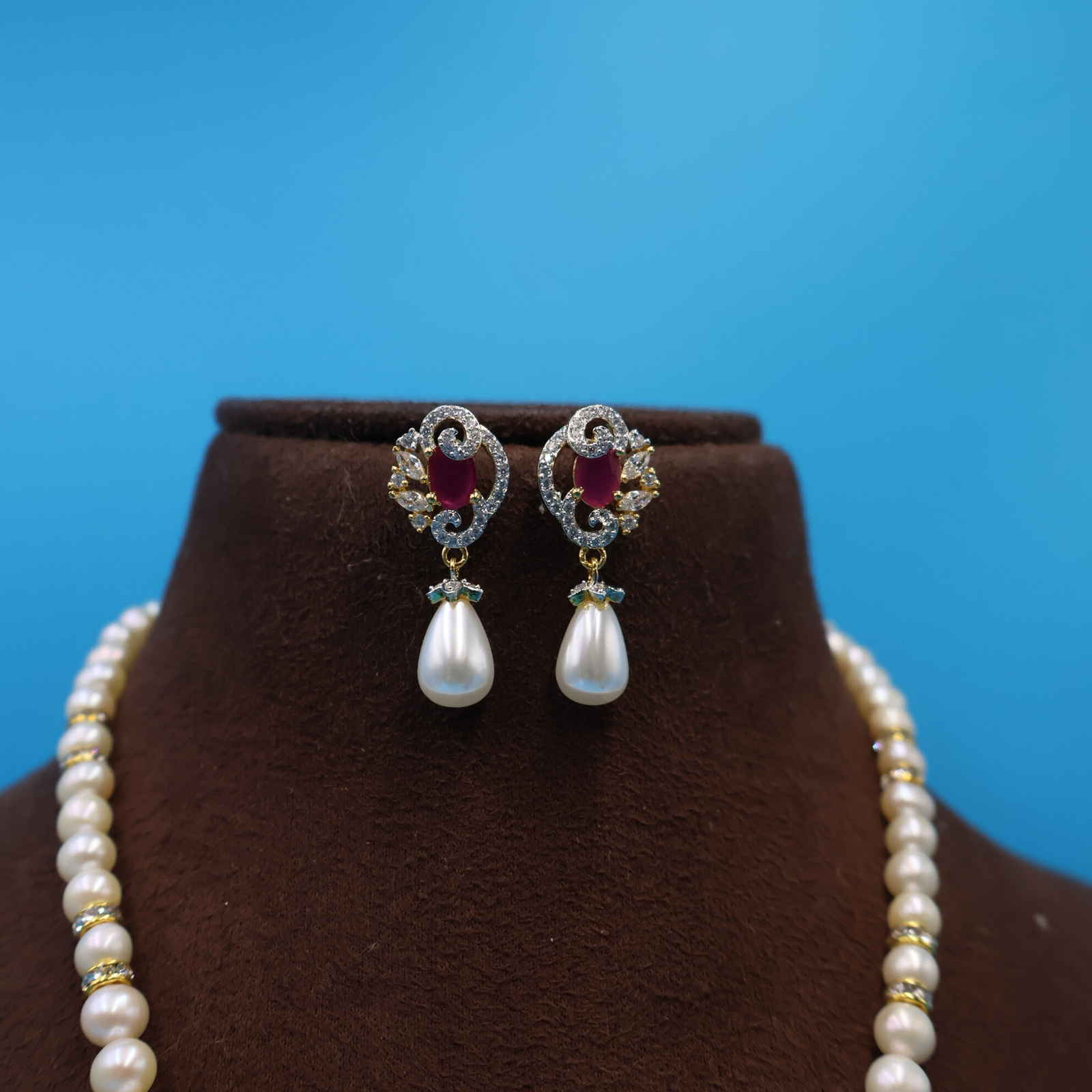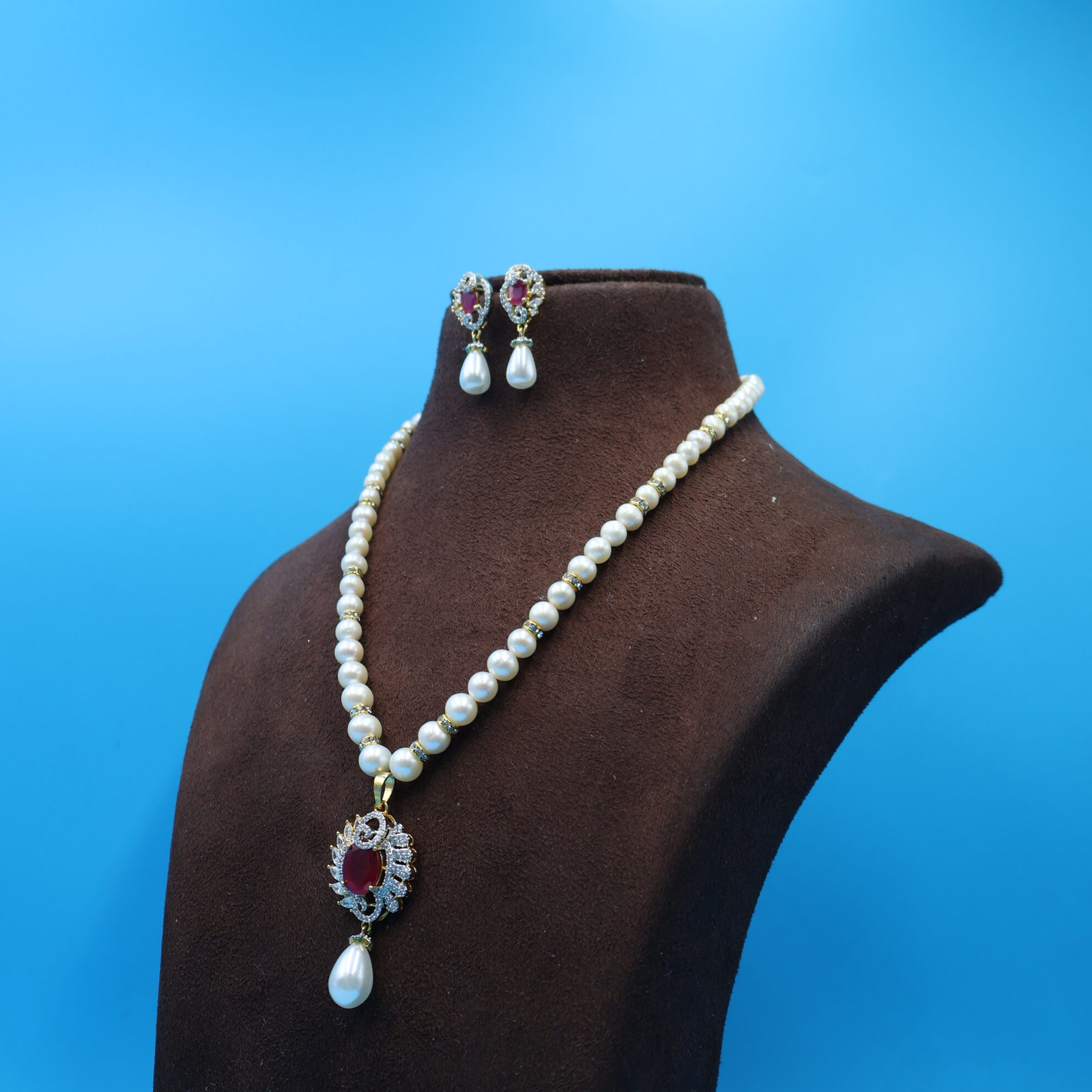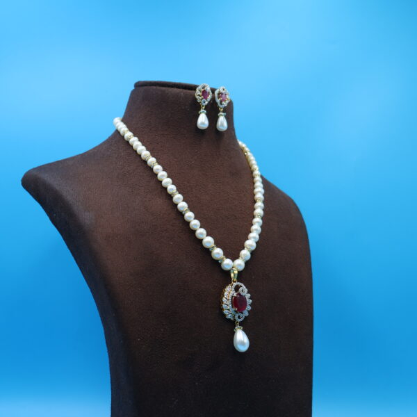 Be the first to review “CZ Ruby Pendant Pearl Necklace”
