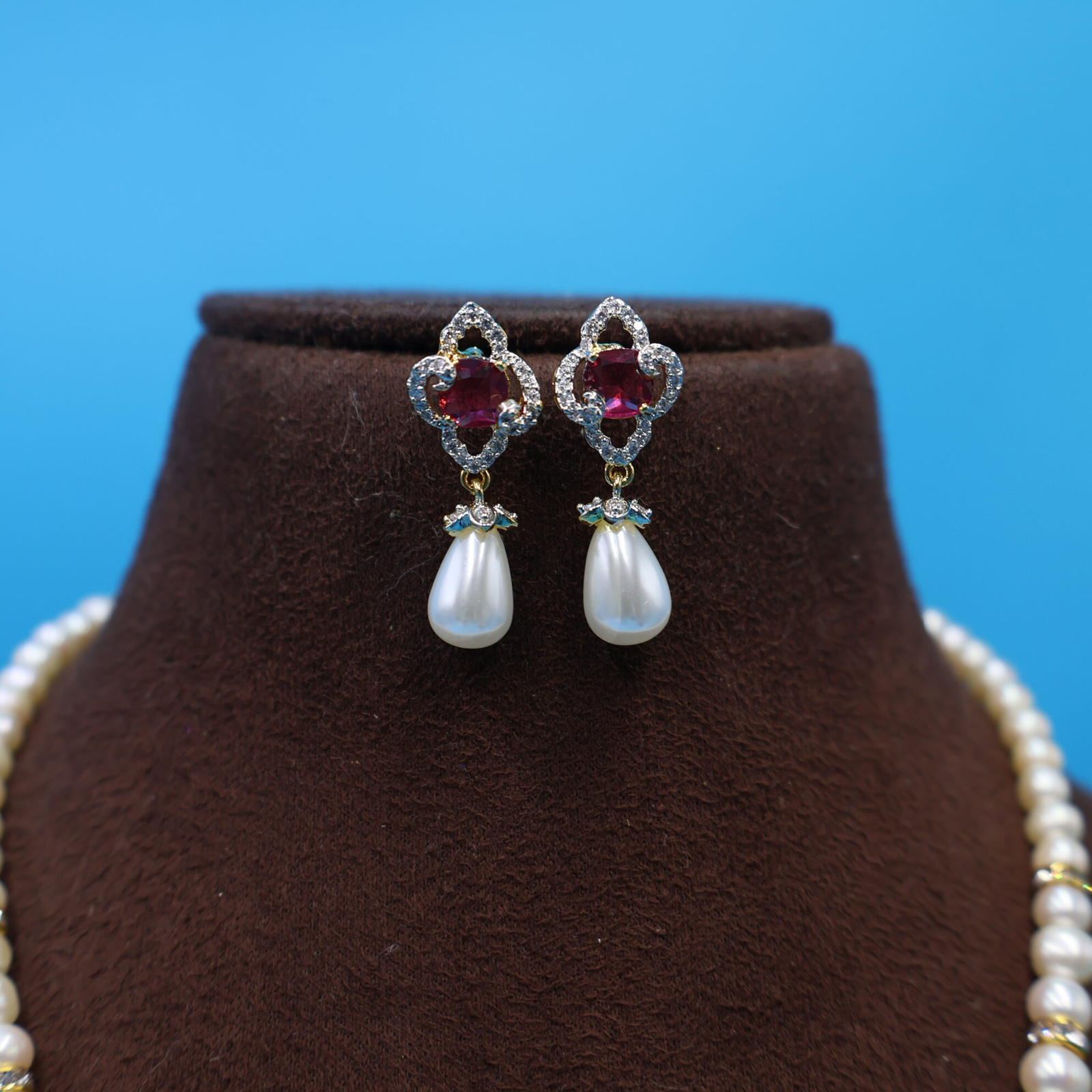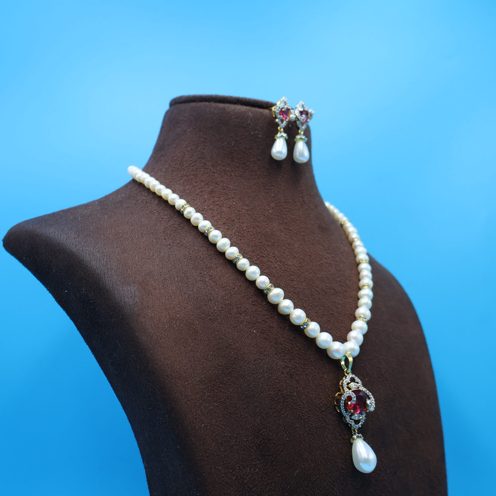 Be the first to review “CZ Ruby Pendant Real Pearl Necklace Set”