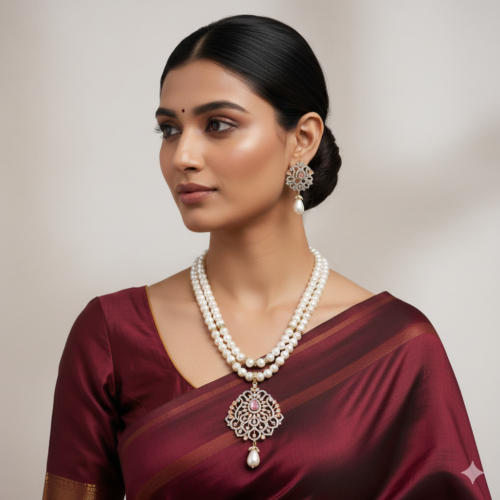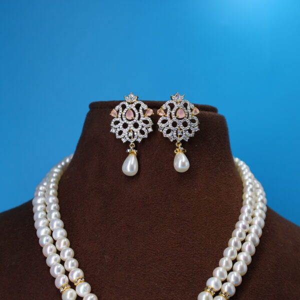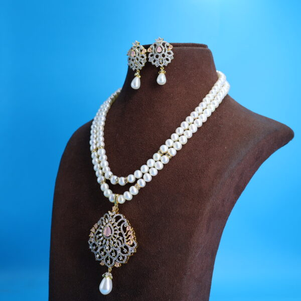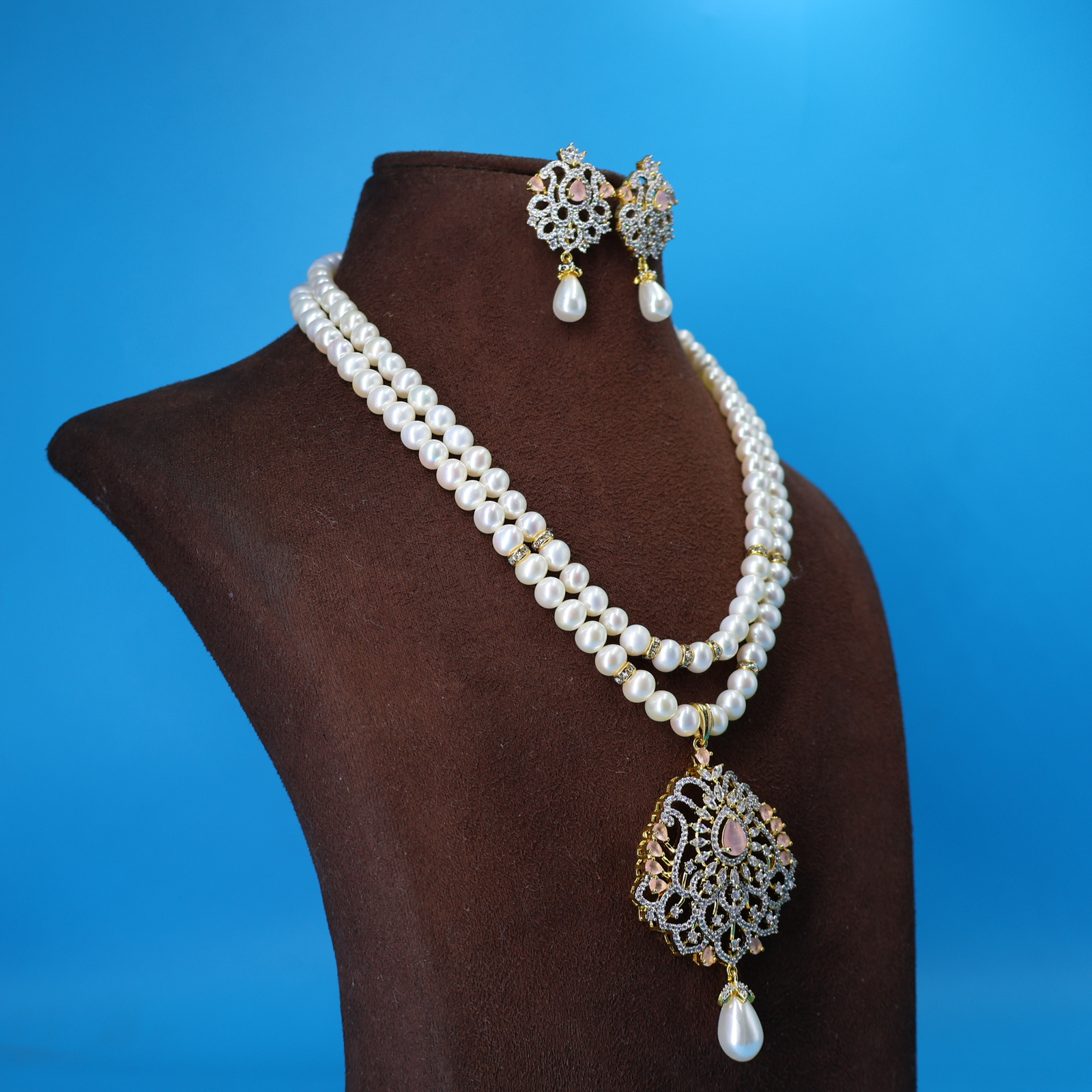 Be the first to review “CZ Two layer Pendant Pearl Necklace Set”