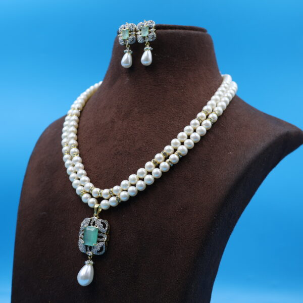 Be the first to review “CZ Two Layered Pearl Pendant Necklace”