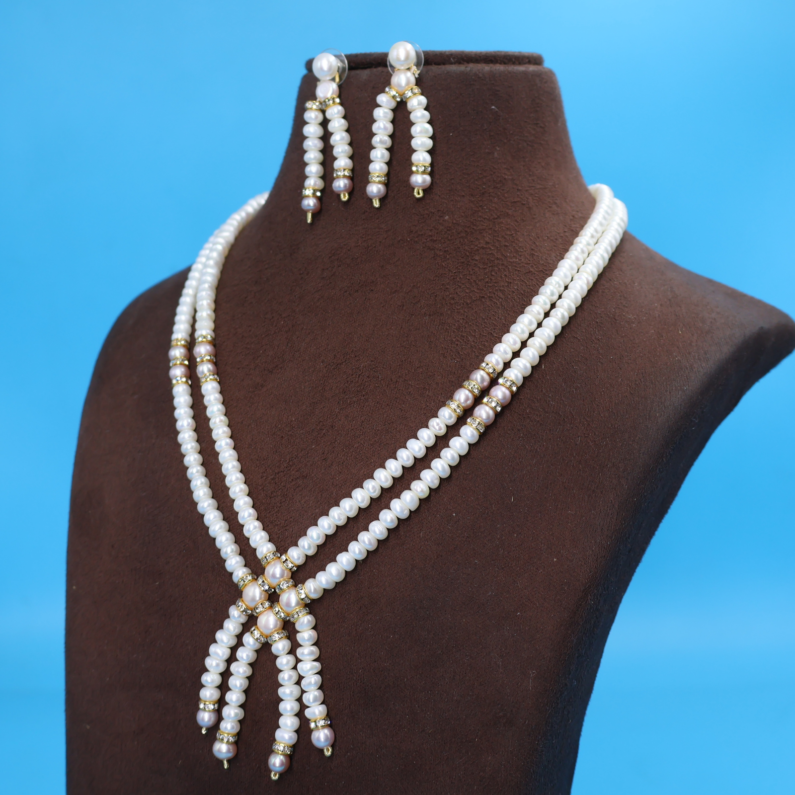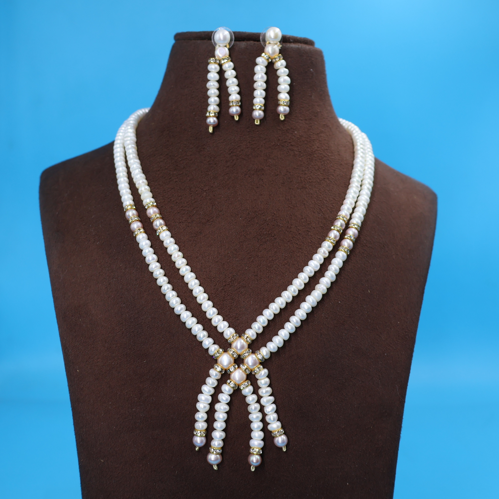double layer Plain Pearls Necklaces Sets