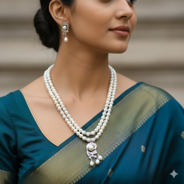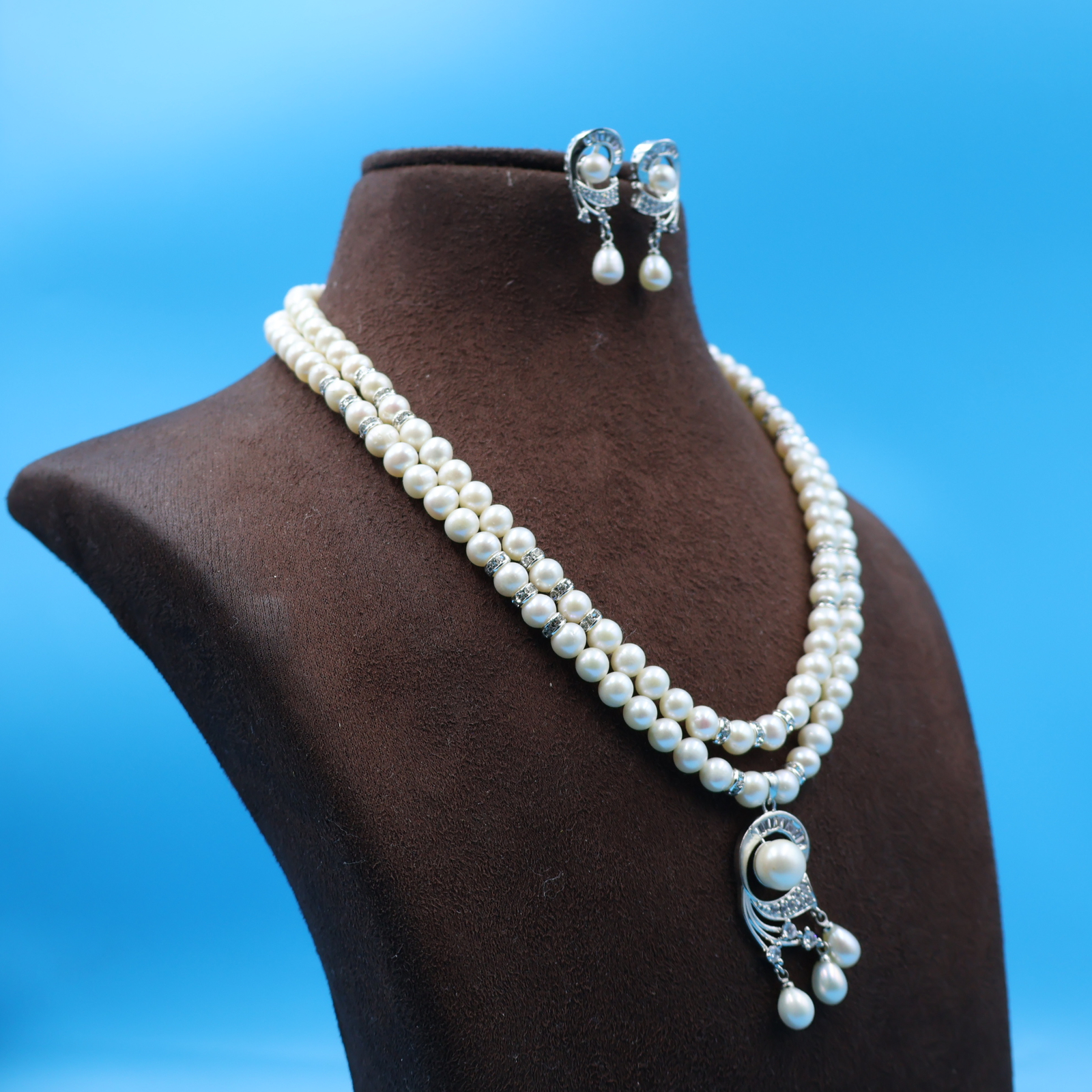 Be the first to review “Double Line Pearl Necklace With Pendant”