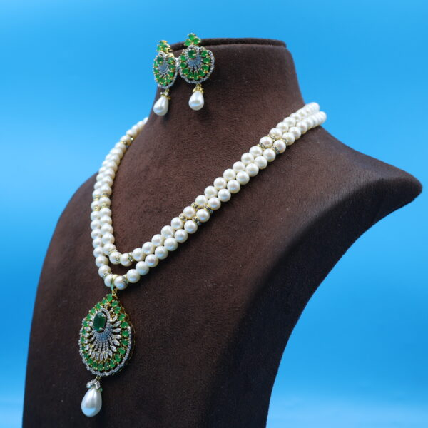 Be the first to review “Elegant Two Layered pendant pearl necklace Set”