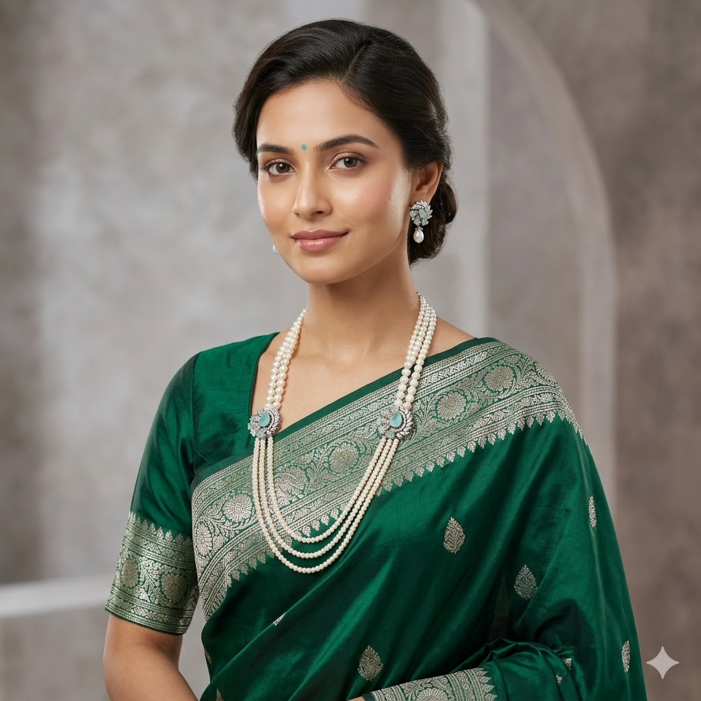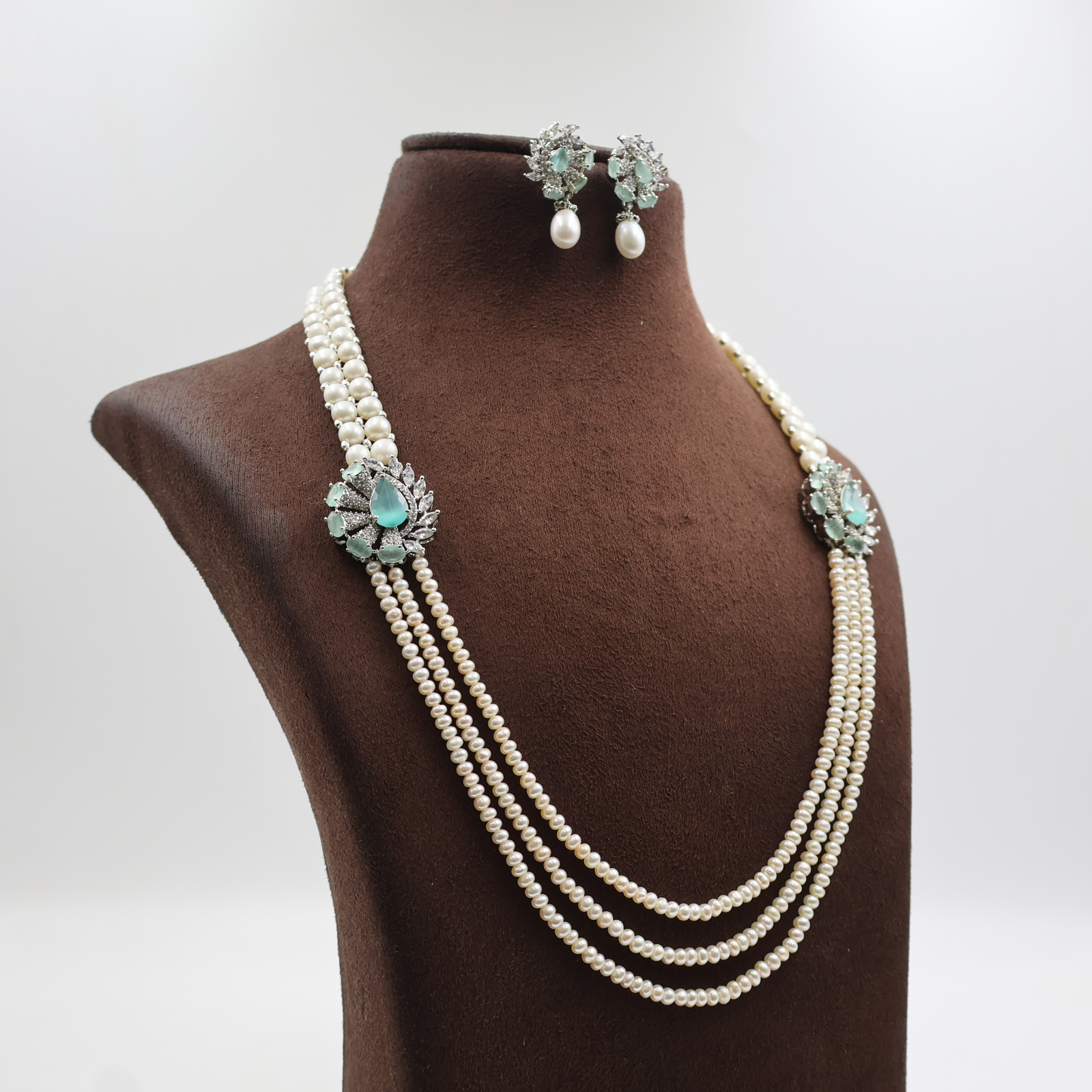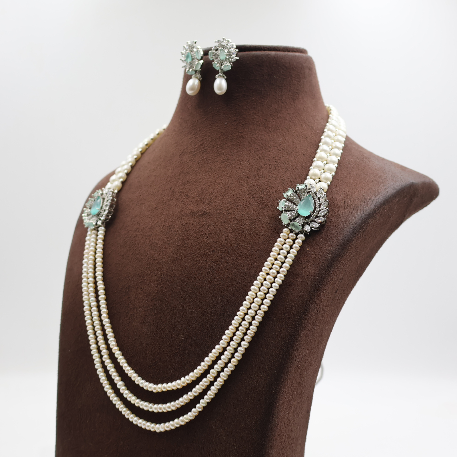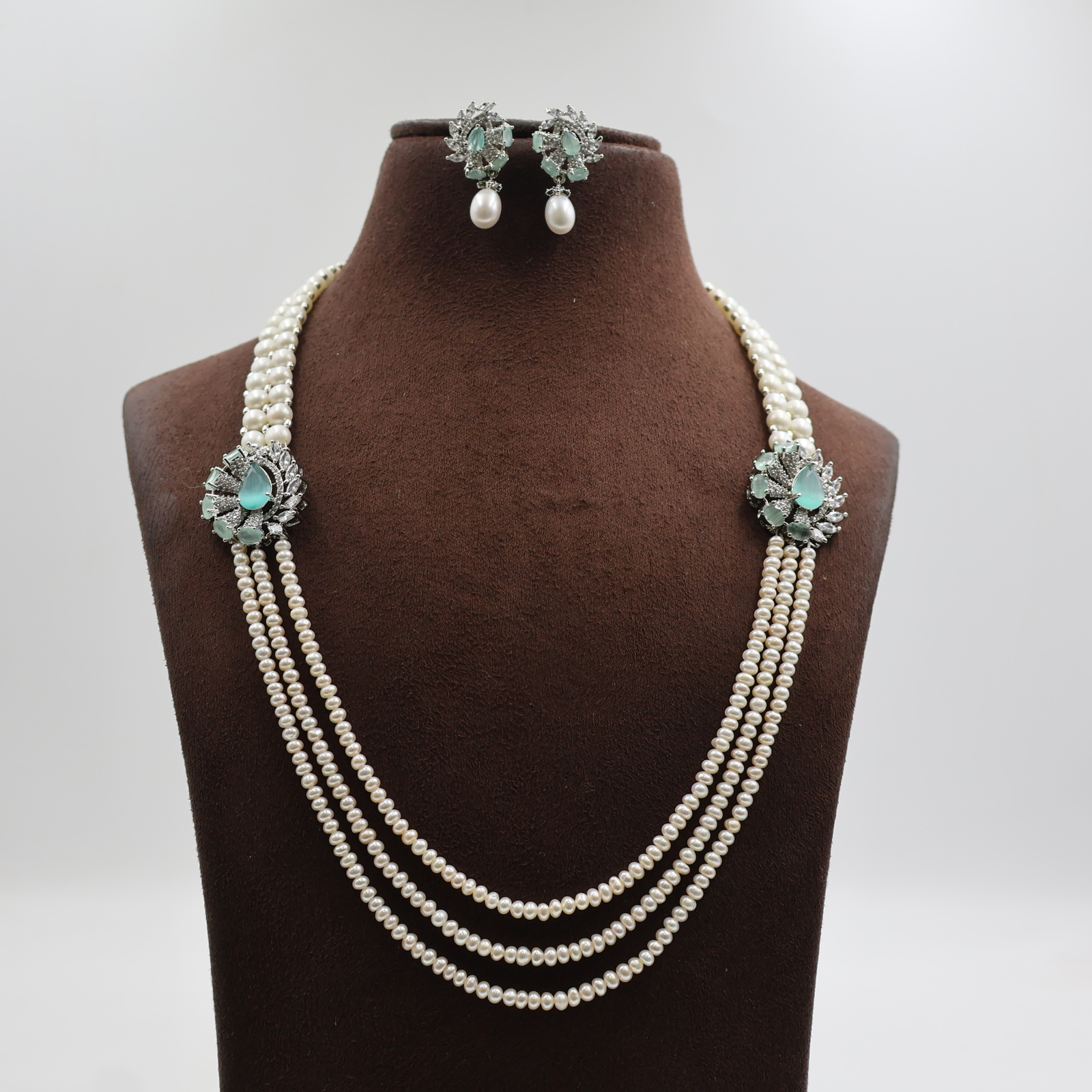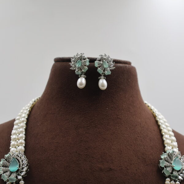 Emerald Pendant Button Side Brooch Pearl Necklace