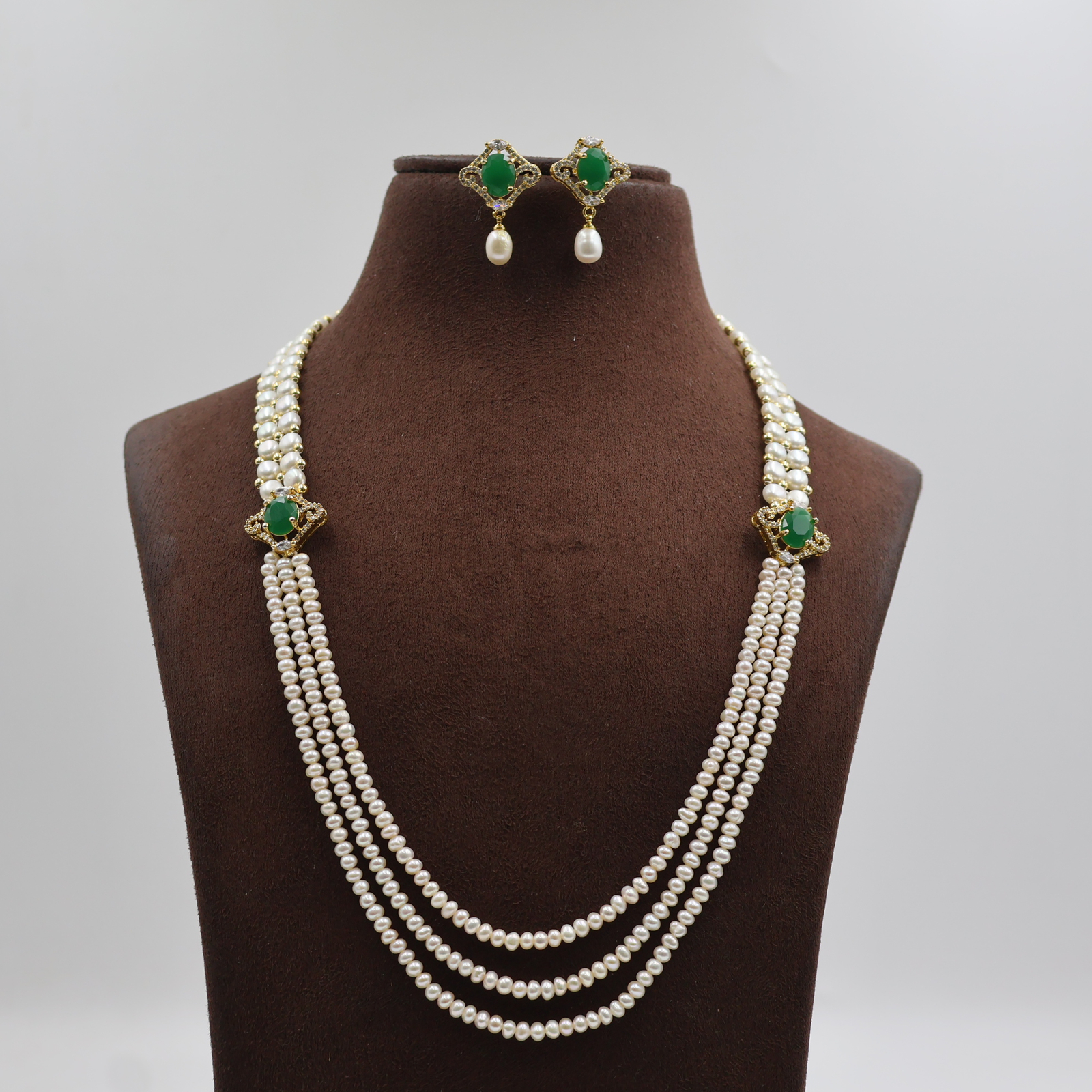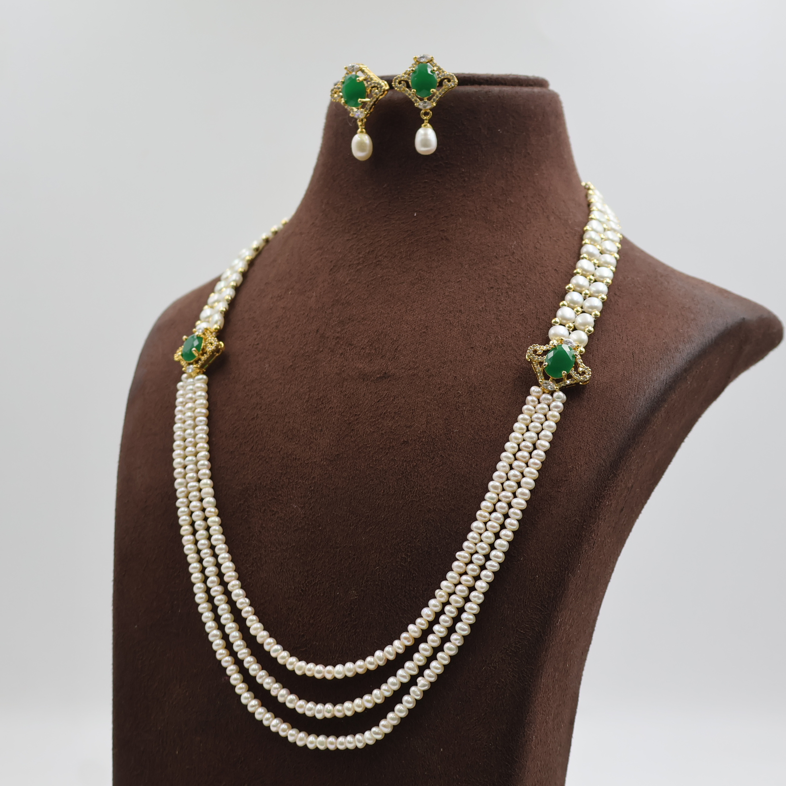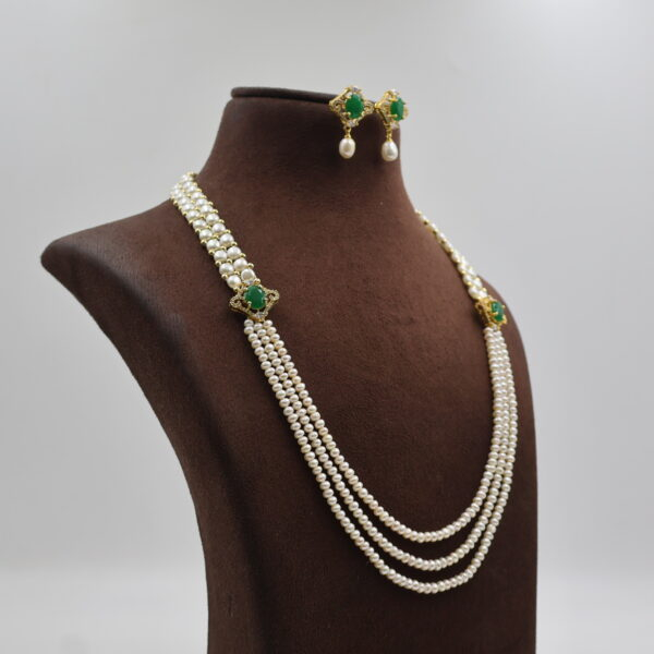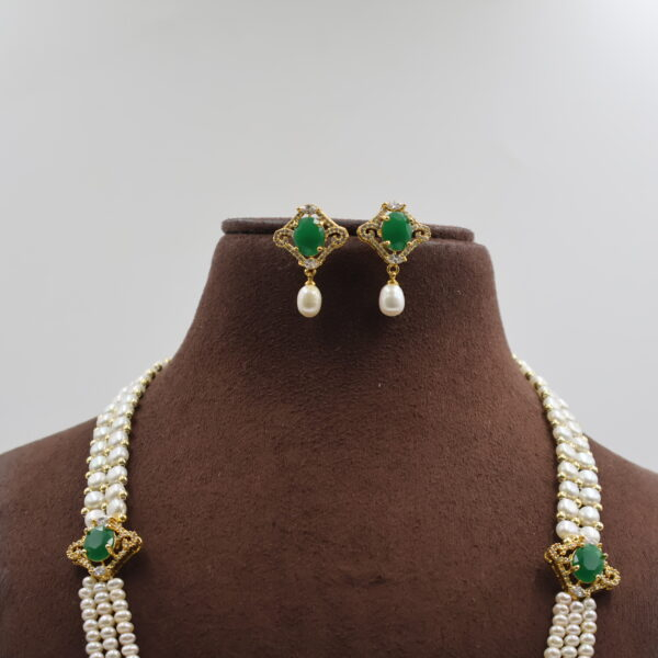 Emerald Side Brooch Pearl Necklace