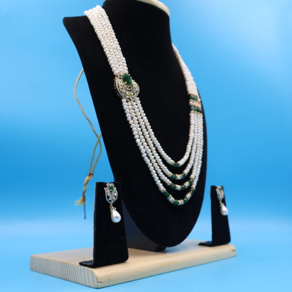 Emerald Side Brooch Pearl Necklace
