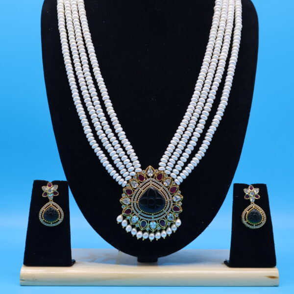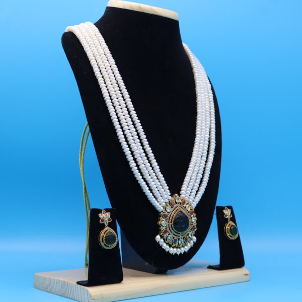 At Laxminarayan Pearls, we believe in offering only authentic and high-quality pearl jewelry. Each piece comes with a promise of authenticity, quality, and timeless appeal. With this Unique Rani Haar Antique Pendant Emerald Pearl Necklace, you don’t just wear a jewel you embrace a story, a tradition, and an everlasting charm.