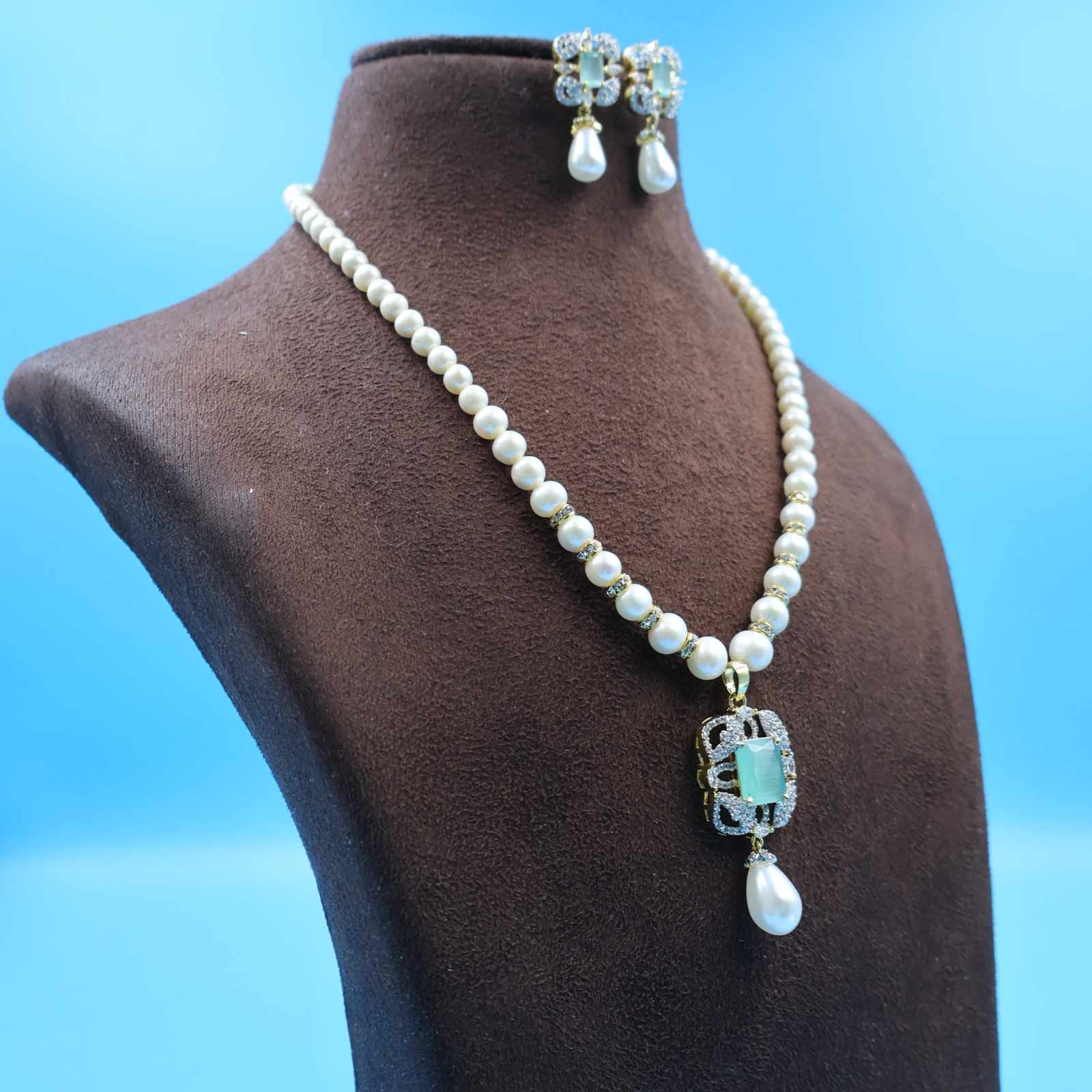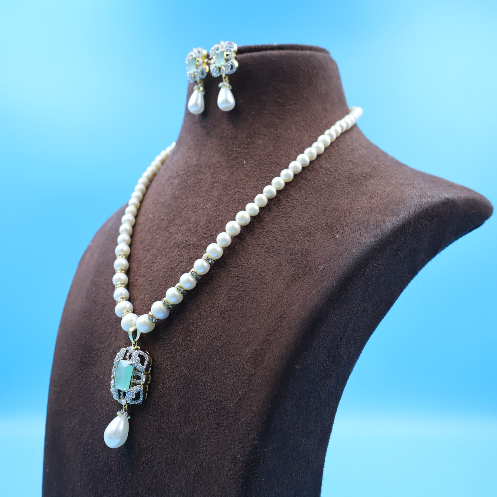 Elevate your jewelry collection with this exquisite Pearl Necklace Set, featuring a stunning combination of deep green Emerald brilliance and the soft glow of real pearls. This set is designed for those who appreciate delicate craftsmanship and timeless beauty.