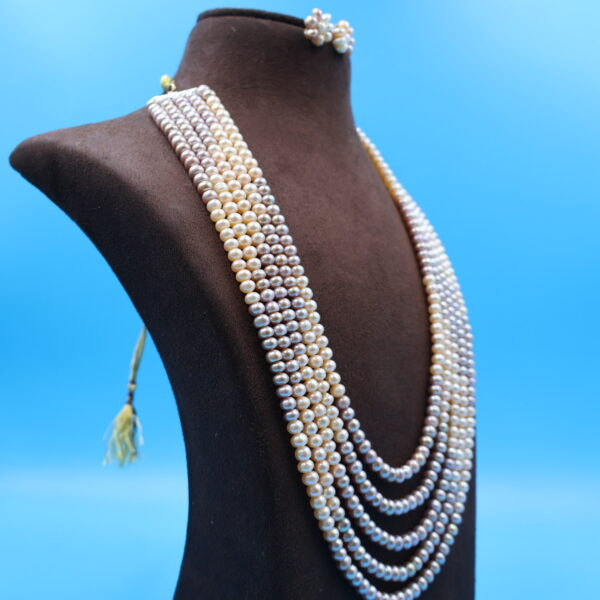 Five Layer Cream And Grey Pearl Necklace