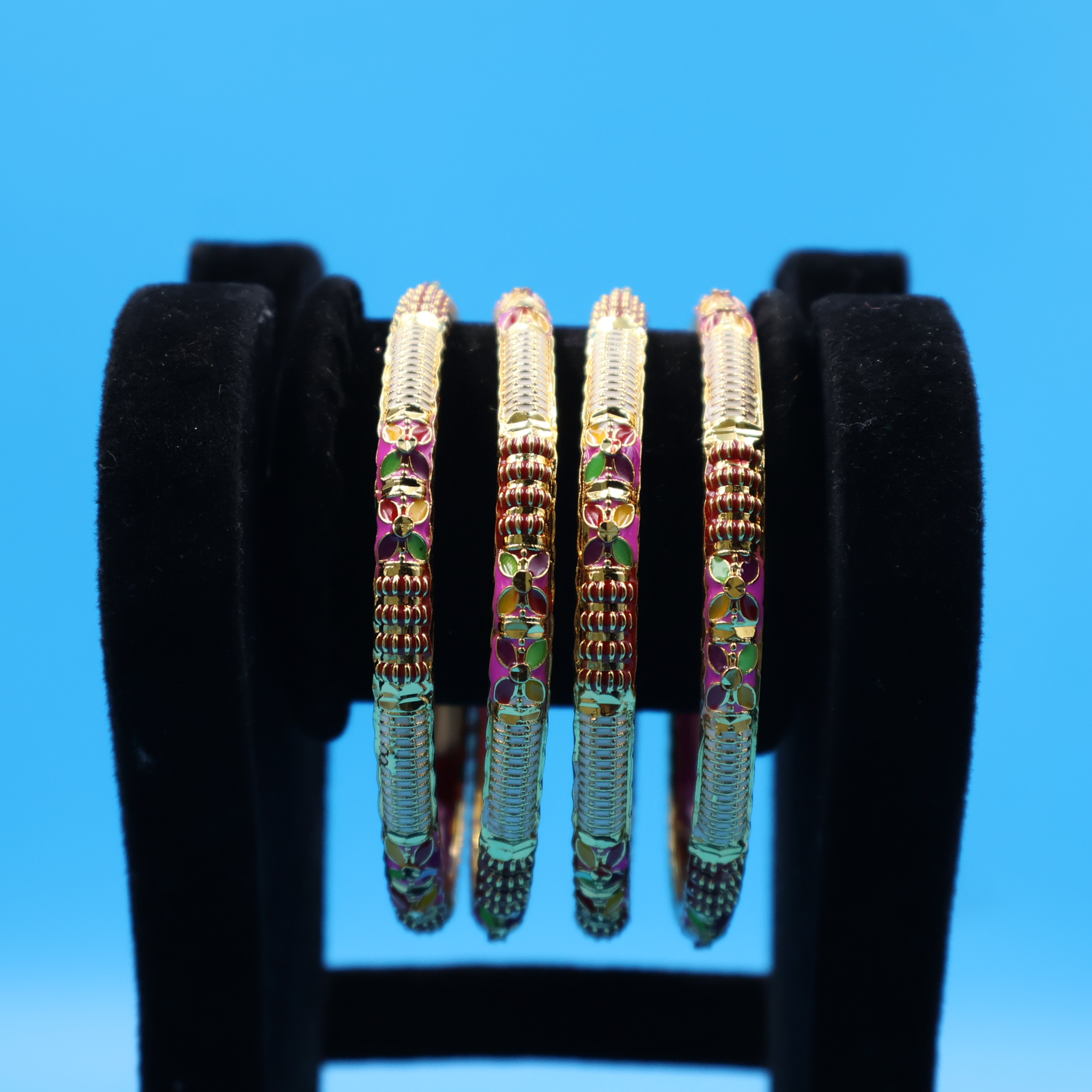 Many sets also include matching kadas (broader bangles) or feature coordinated color schemes to complement sarees, lehengas, and salwar suits.