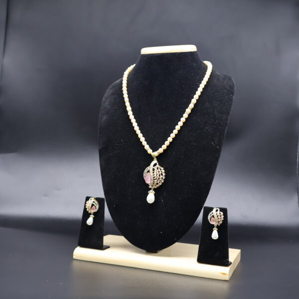 Single Line Pink Pendant Pearl Necklace Set