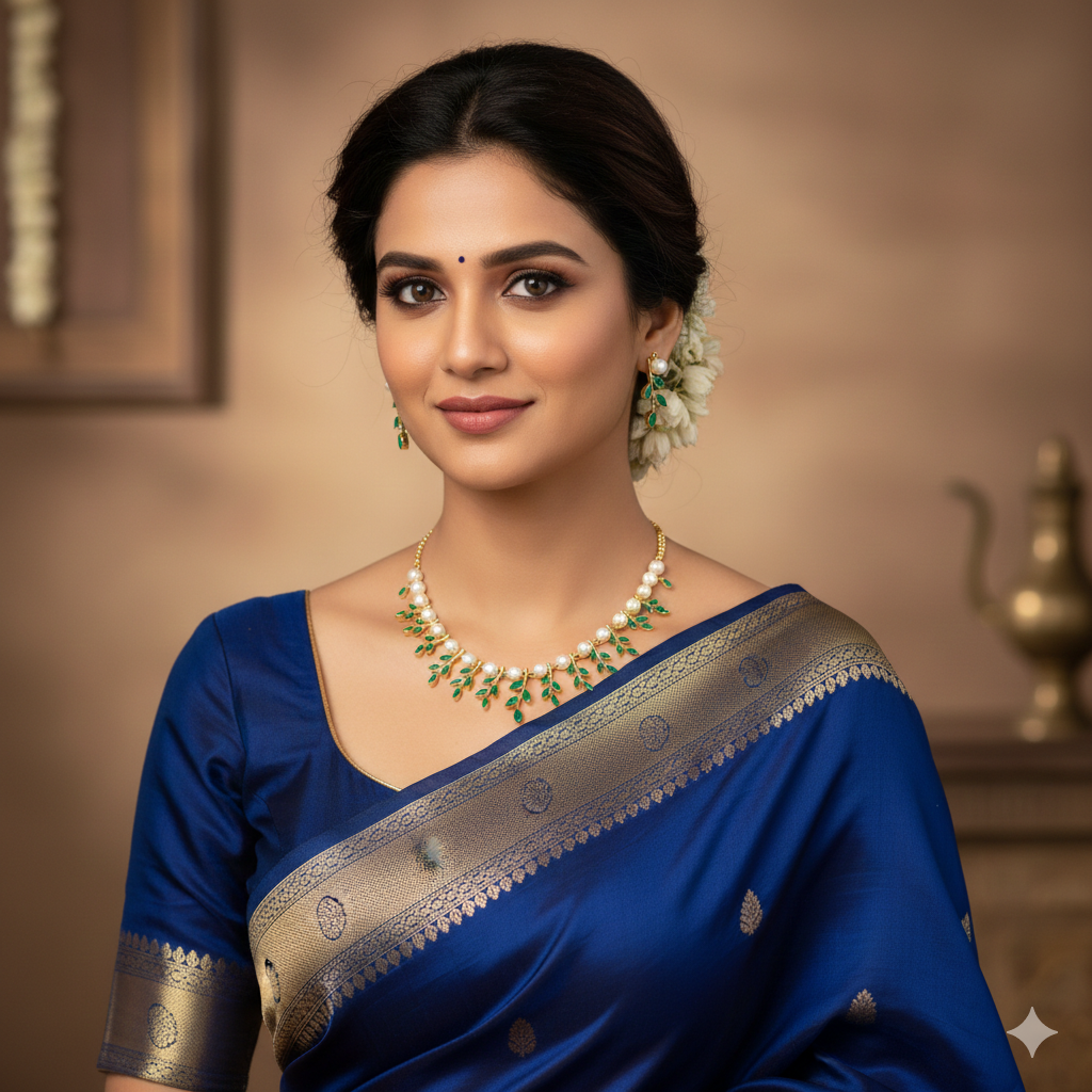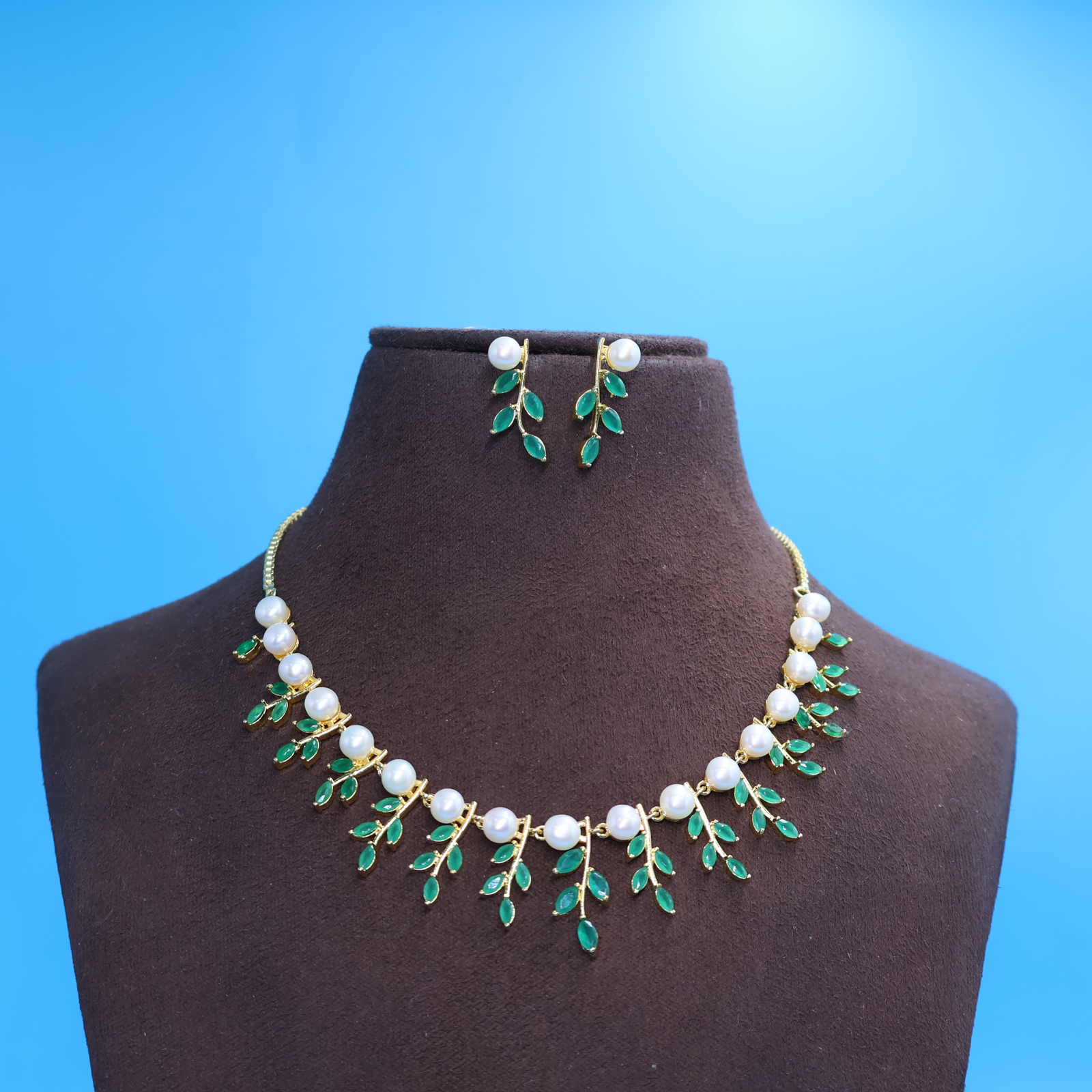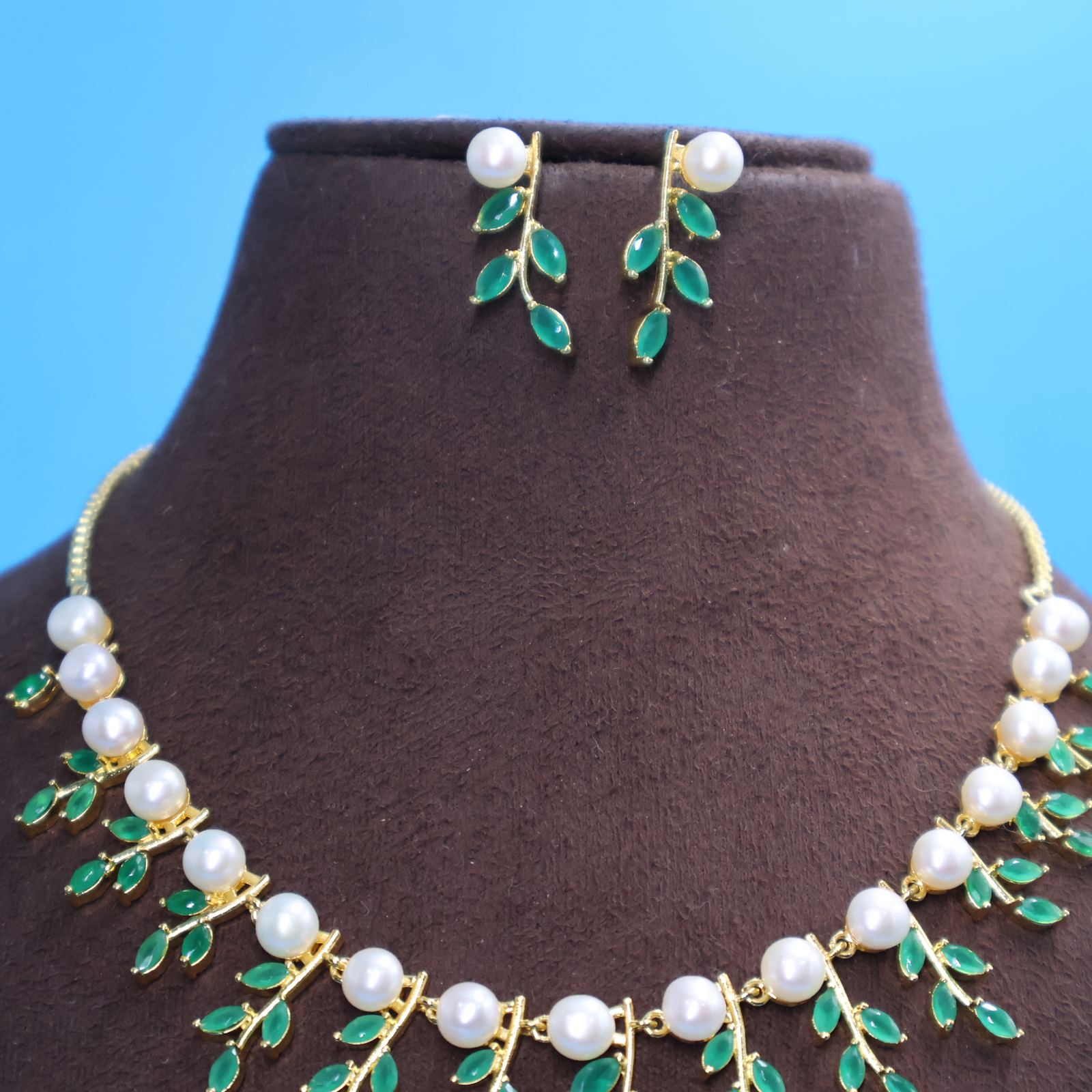 Be the first to review “Leaf Design Emerald Pearl Necklace”