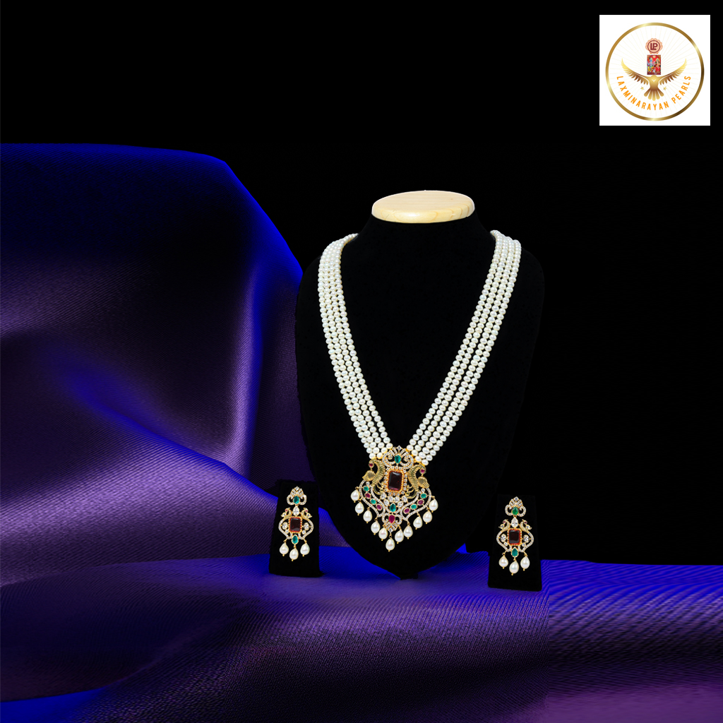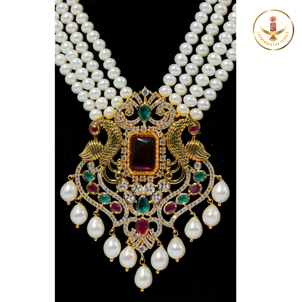 Our collection features a white pearl necklace that embodies classic charm and versatility. White pearls have long been a symbol of purity, sophistication, and timeless beauty, making them a must-have in every jewelry collection. The soft, radiant glow of each pearl reflects light effortlessly, creating a subtle shimmer that captures attention without overpowering your ensemble. This necklace is designed to complement a wide range of outfits, from traditional ethnic wear to modern contemporary dresses, making it suitable for women of all ages.