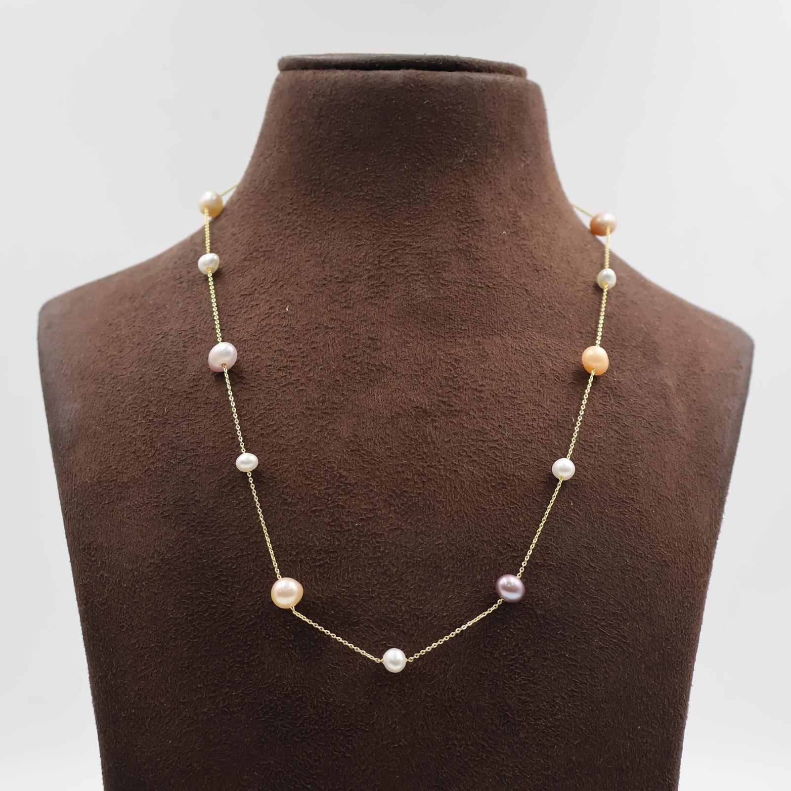 Multicolor Pearl Gold Chain Necklace