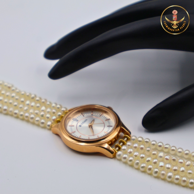 Available in various finishes classic white, soft pink, or deep iridescent black the bracelet adds a sophisticated touch to any ensemble. A hidden clasp ensures a seamless look while providing secure, all-day wear. Whether worn to a formal occasion or as an everyday statement, the Pearl Watch transforms any outfit into an expression of effortless elegance.