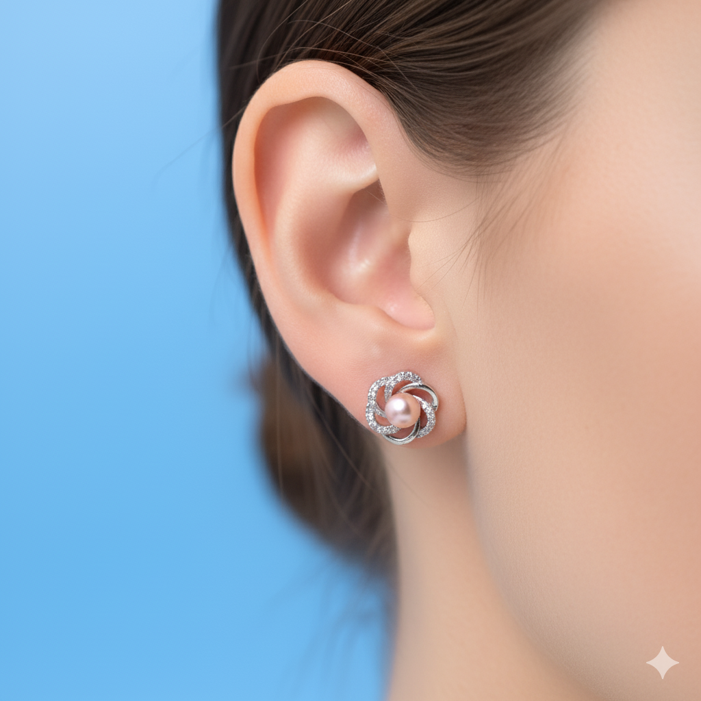 Pink Pearl Stud Earrings