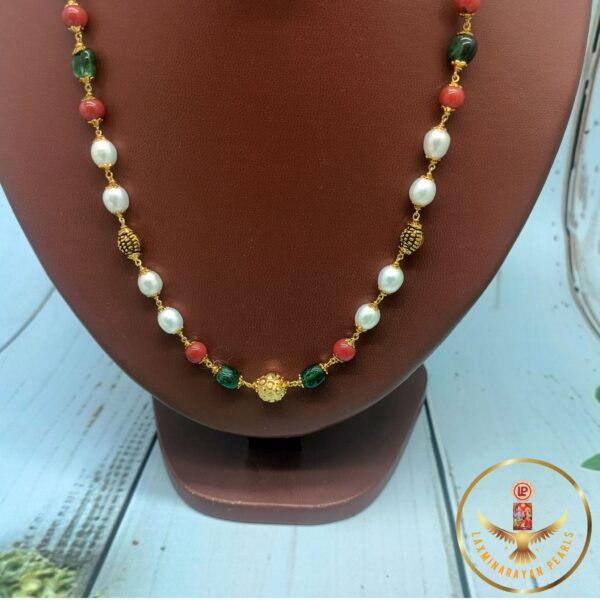 At Laxminarayan Pearls and Siddheshwar Jewellers, we take pride in our legacy of fine jewelry-making. This Coral Oval Pearl Necklace Set reflects our commitment to excellence, authenticity, and aesthetic finesse. Each piece is quality-checked to meet the highest standards of design and comfort, so you can wear it with confidence and pride.