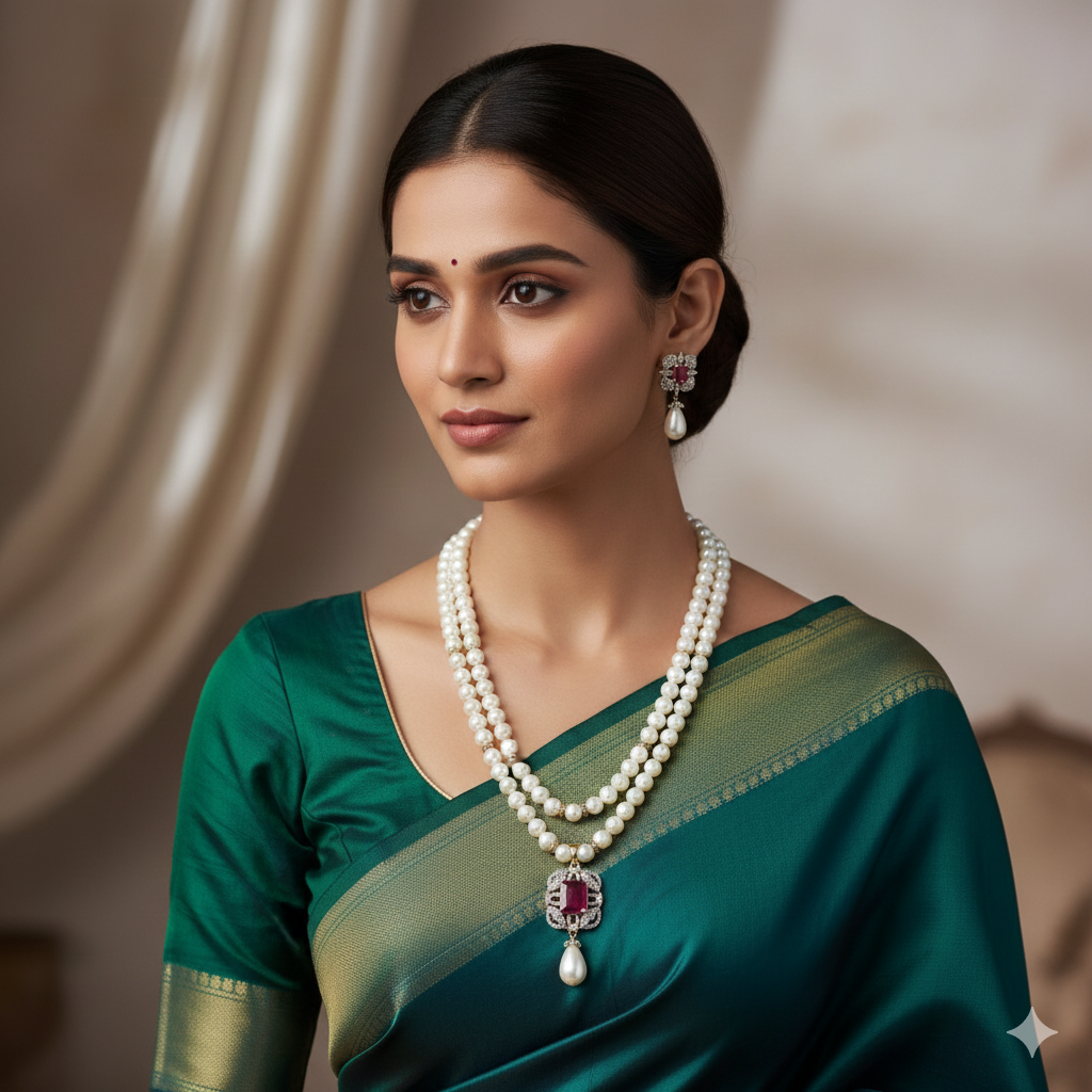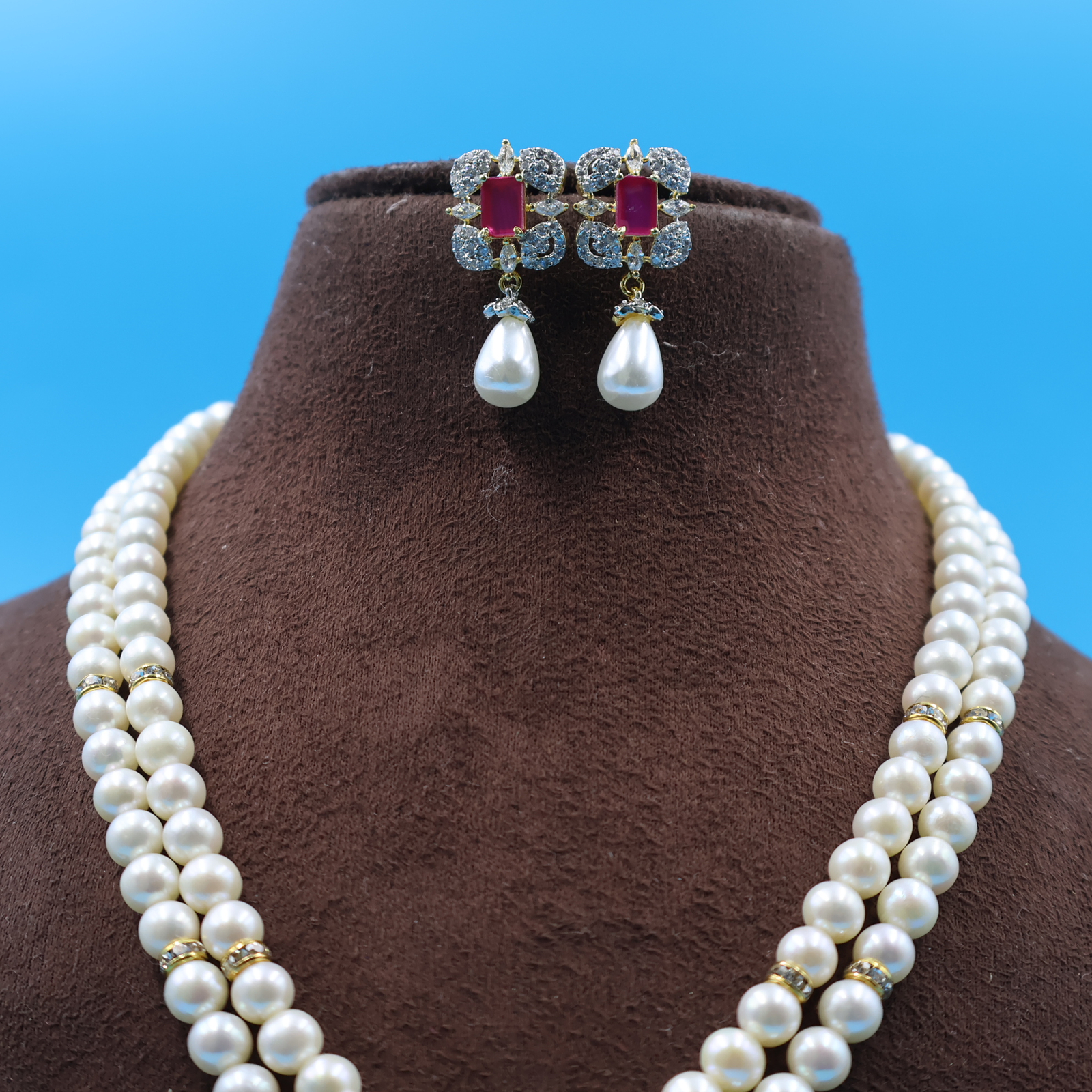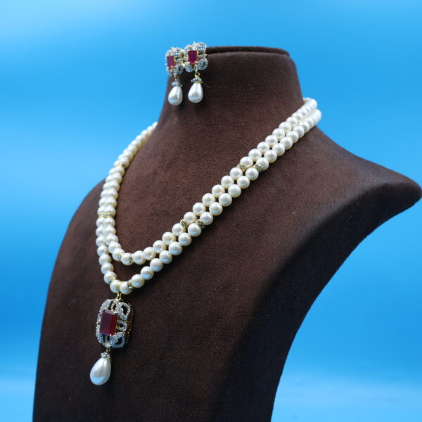 Be the first to review “Ruby Pendant Pearl Necklace Set”