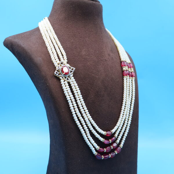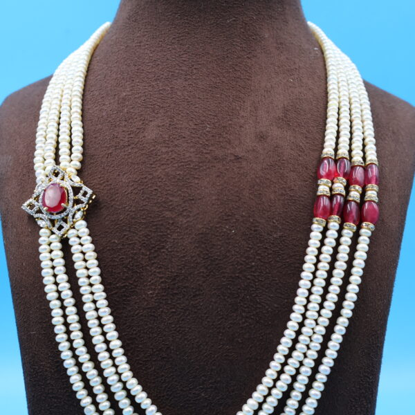Be the first to review “Ruby Pendant Side Brooch Pearl Necklace”