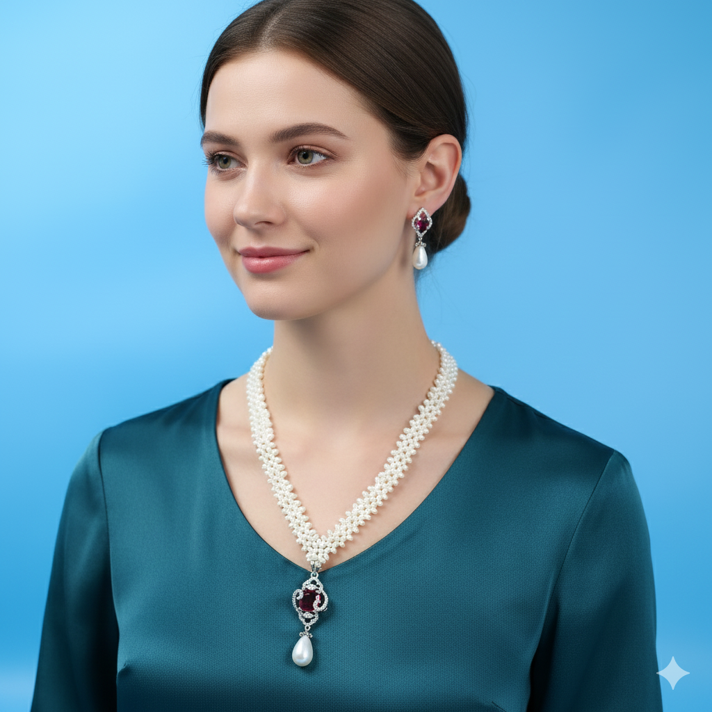 Be the first to review “Ruby Stone Chandani Pearl Necklace”