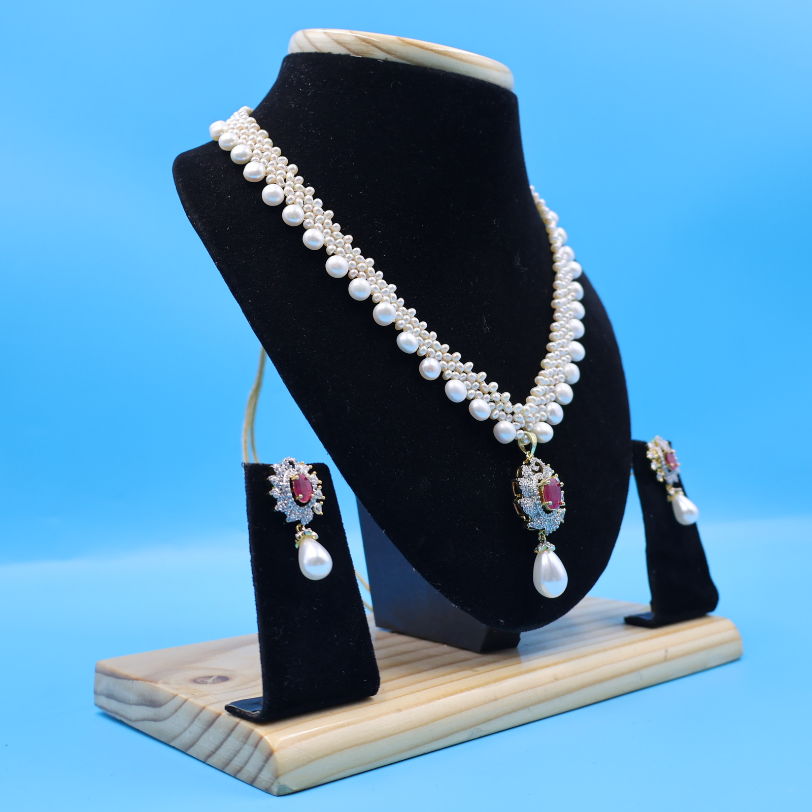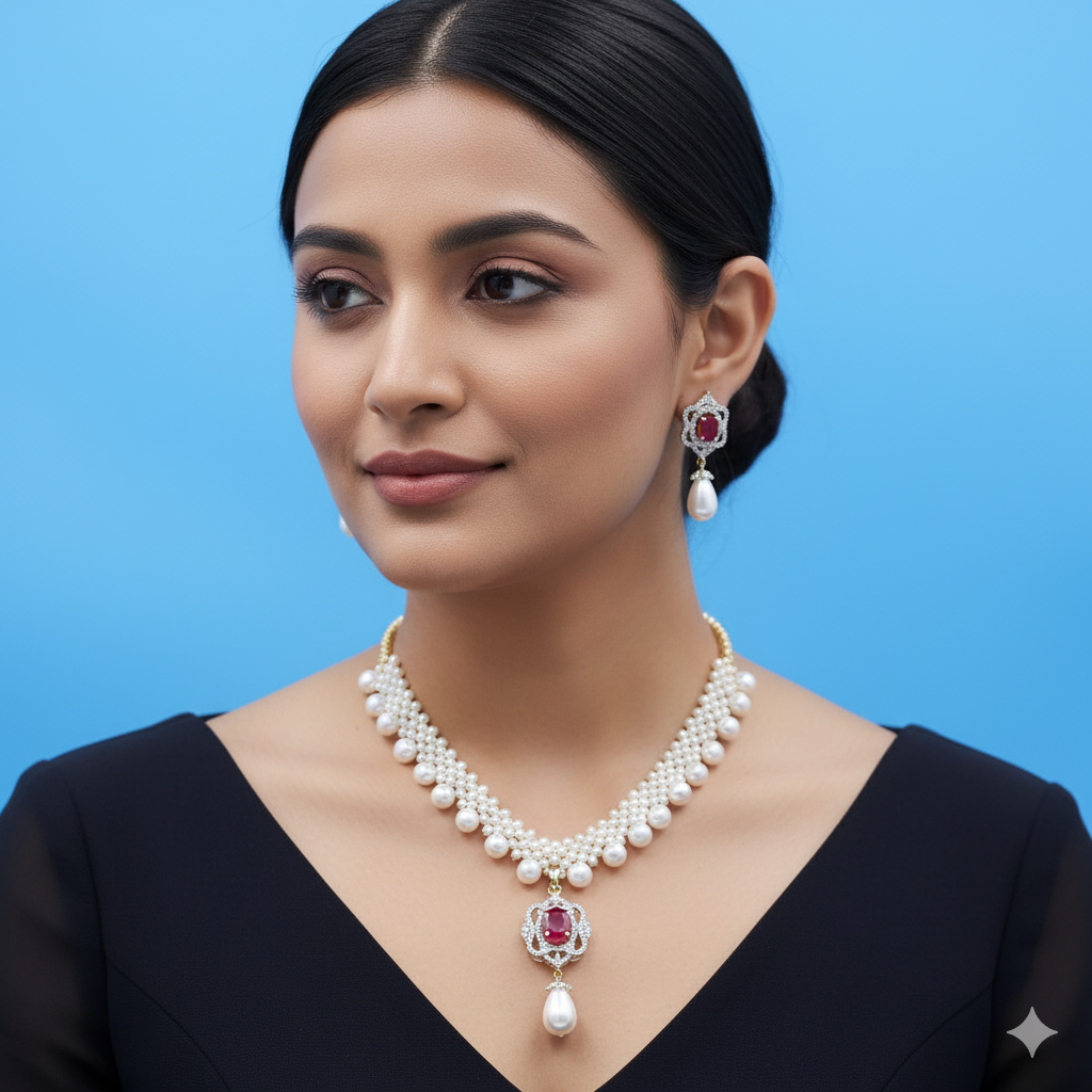Ruby Stone Pearl Jali Necklace