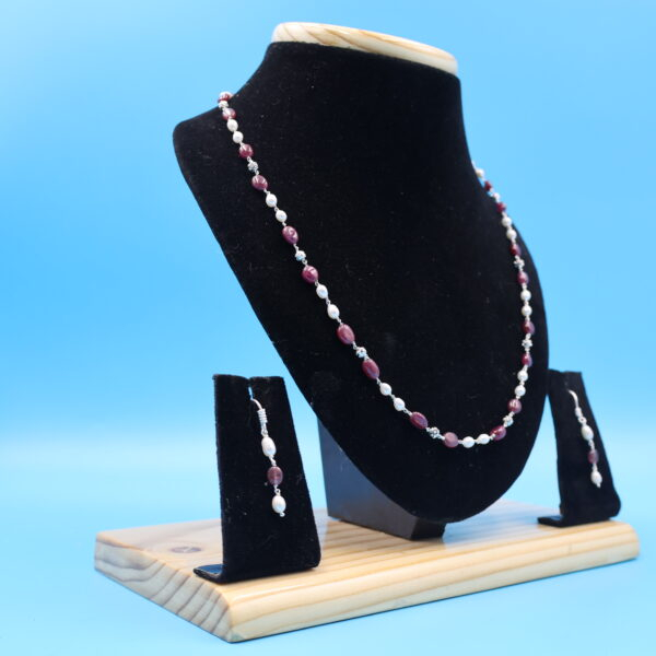 Ruby Stone Pearl Necklace Set