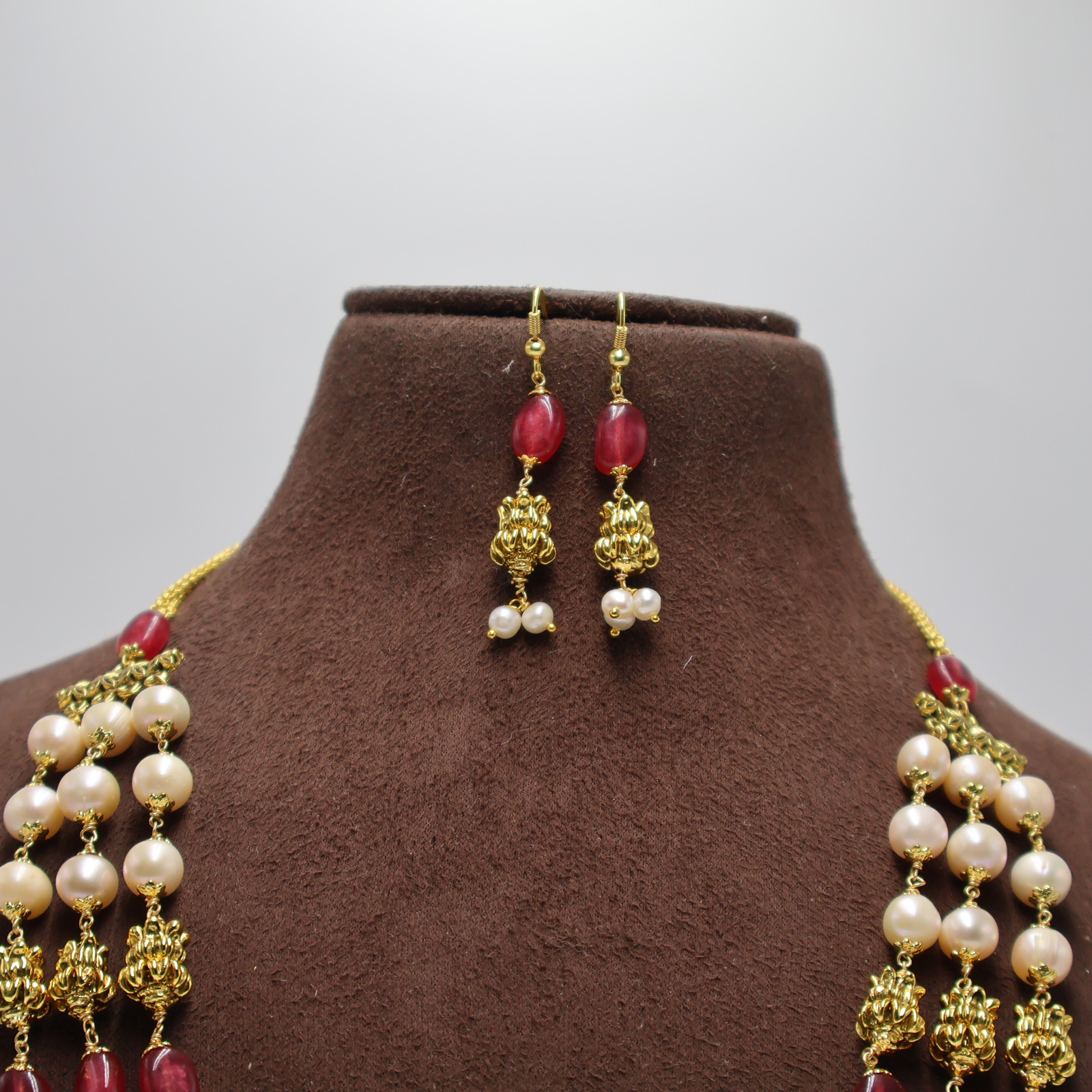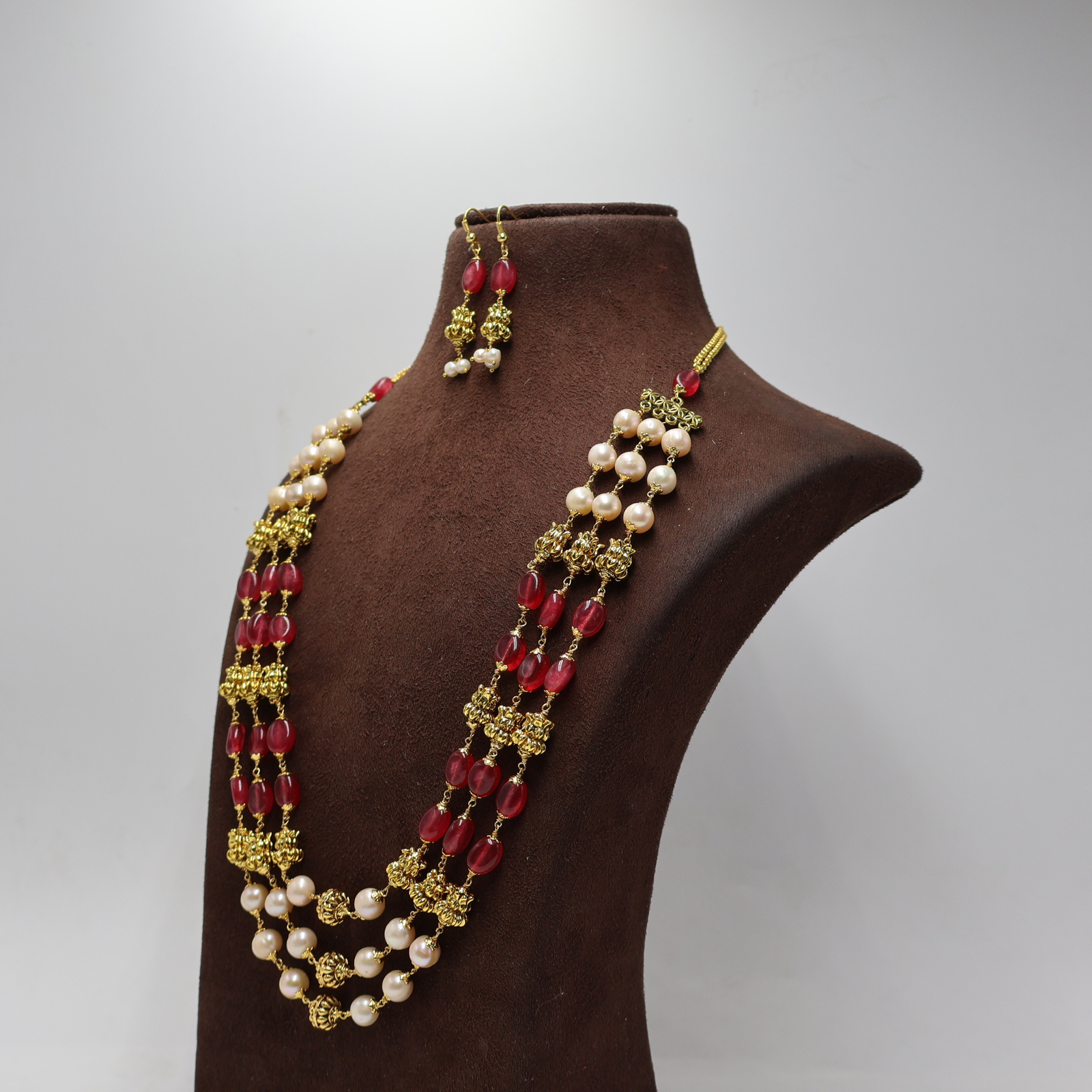Be the first to review “Ruby Three Layer Pearls Taar Mala”