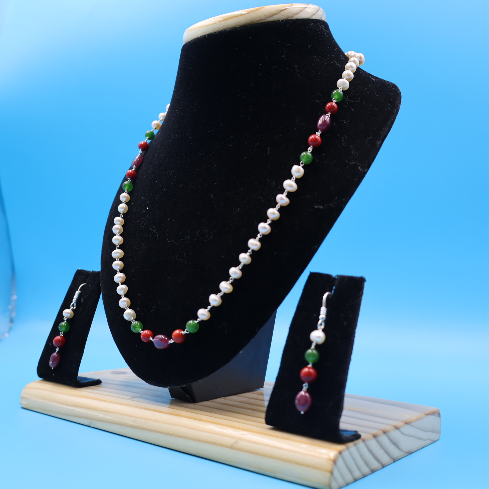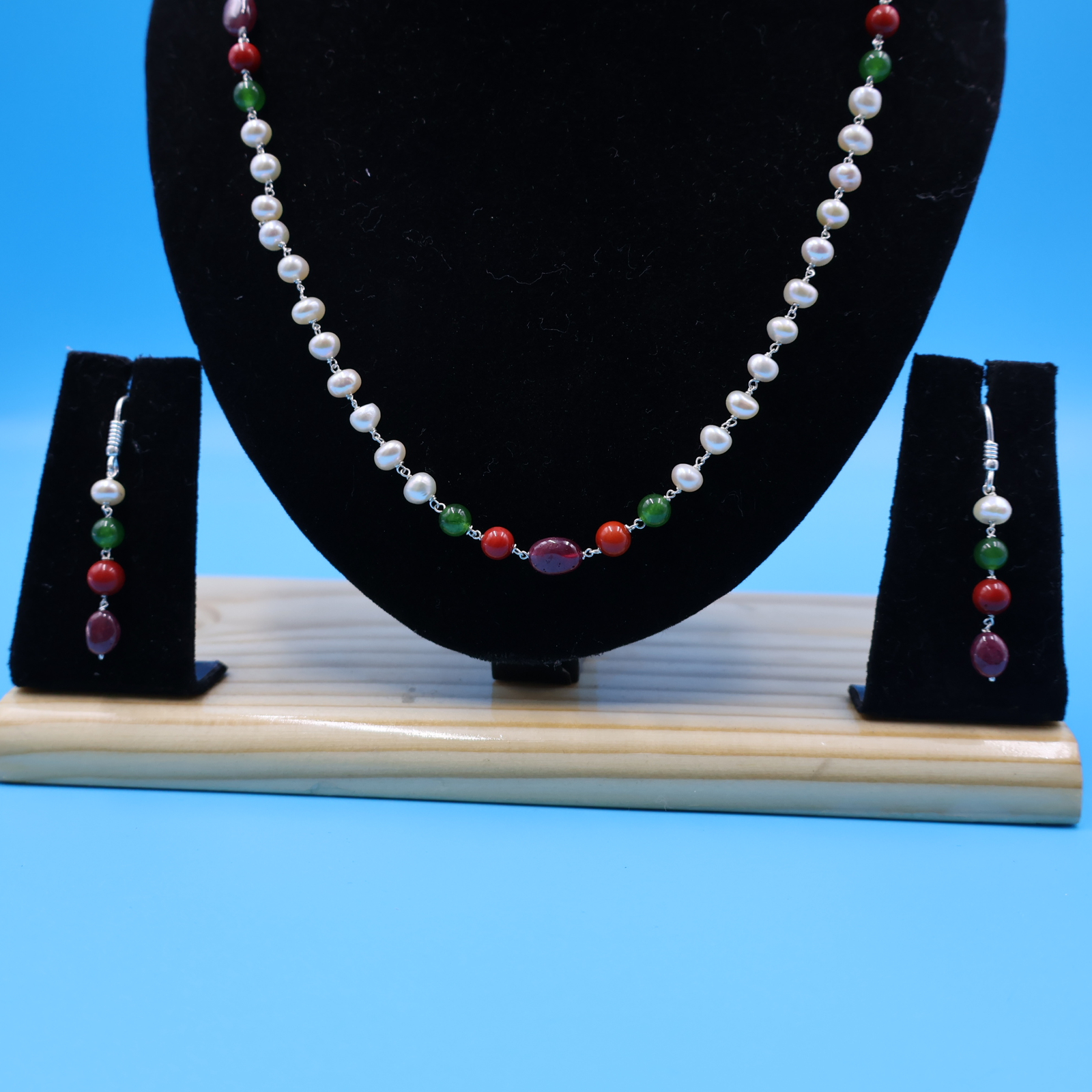 Single line Emerald Ruby Pearl Taar Mala