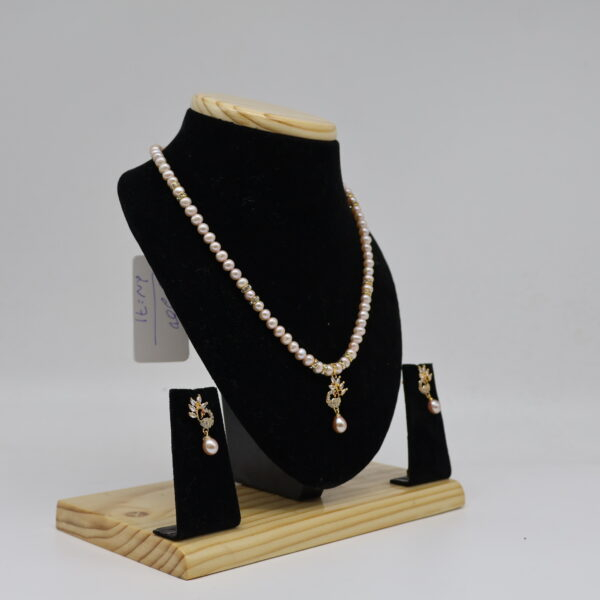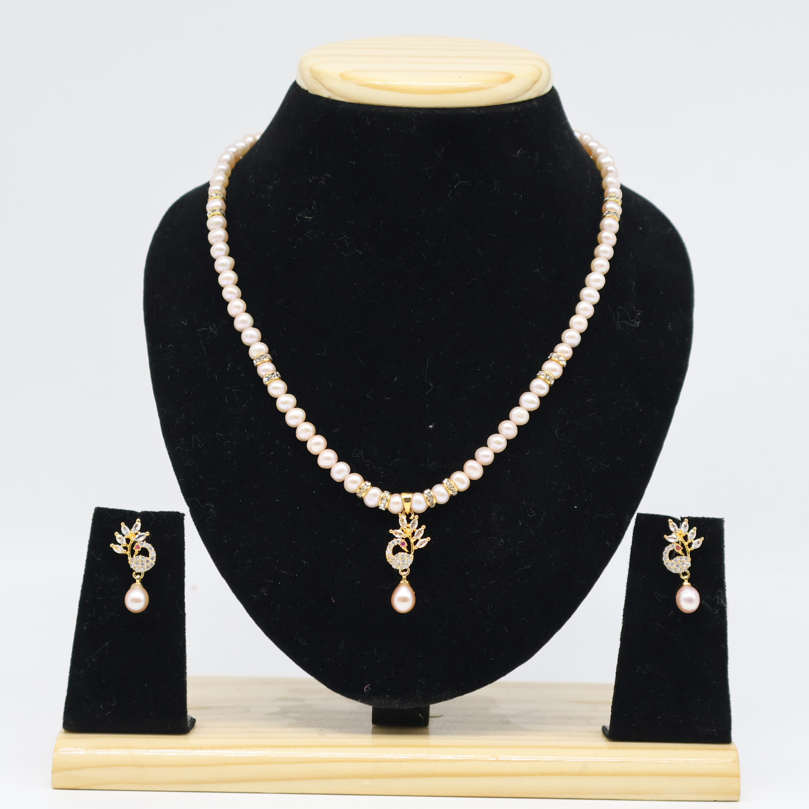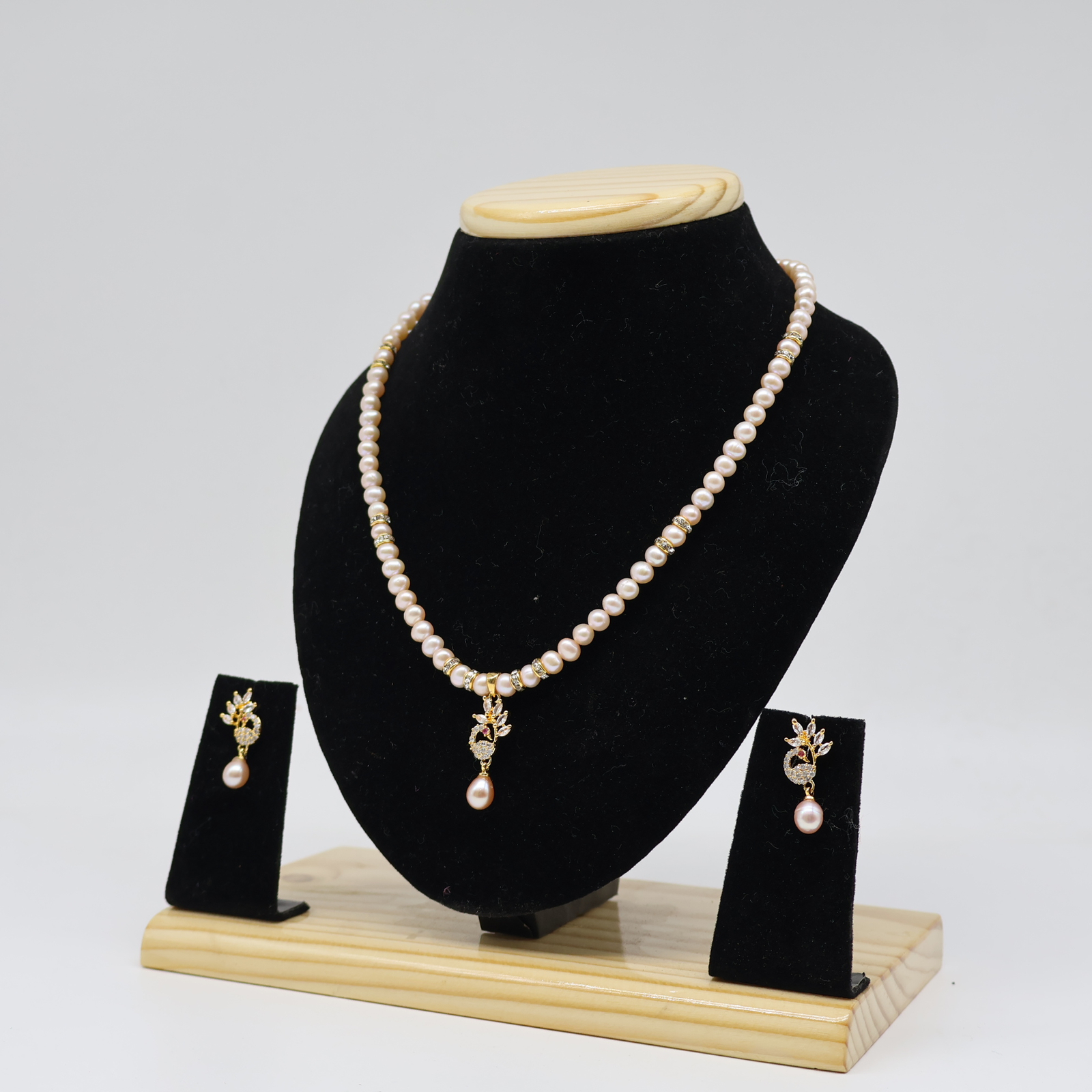 Paired with matching pearl earrings, the set offers a complete and cohesive look. The earrings mirror the pendant’s elegance, featuring matching pearls set in delicate designs that frame the face and accentuate your features. Lightweight and easy to wear, they are designed to offer maximum comfort without compromising on style.