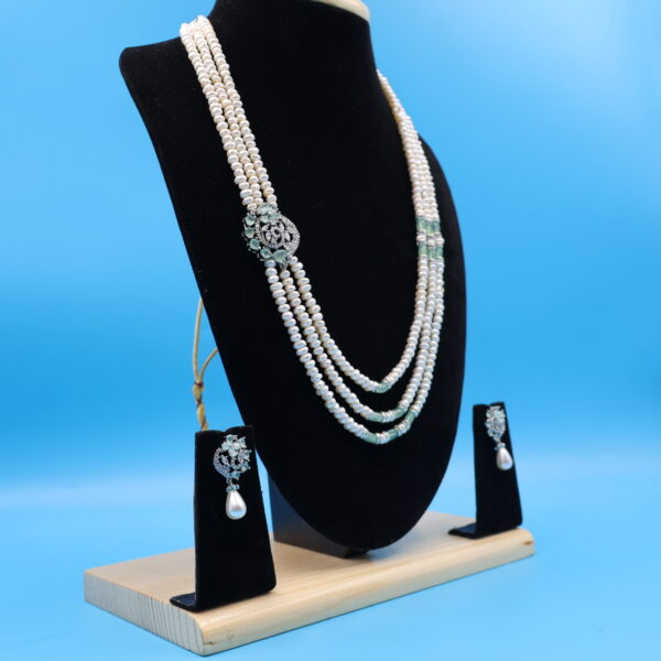 Three Layer Side Brooch Pearl Necklace