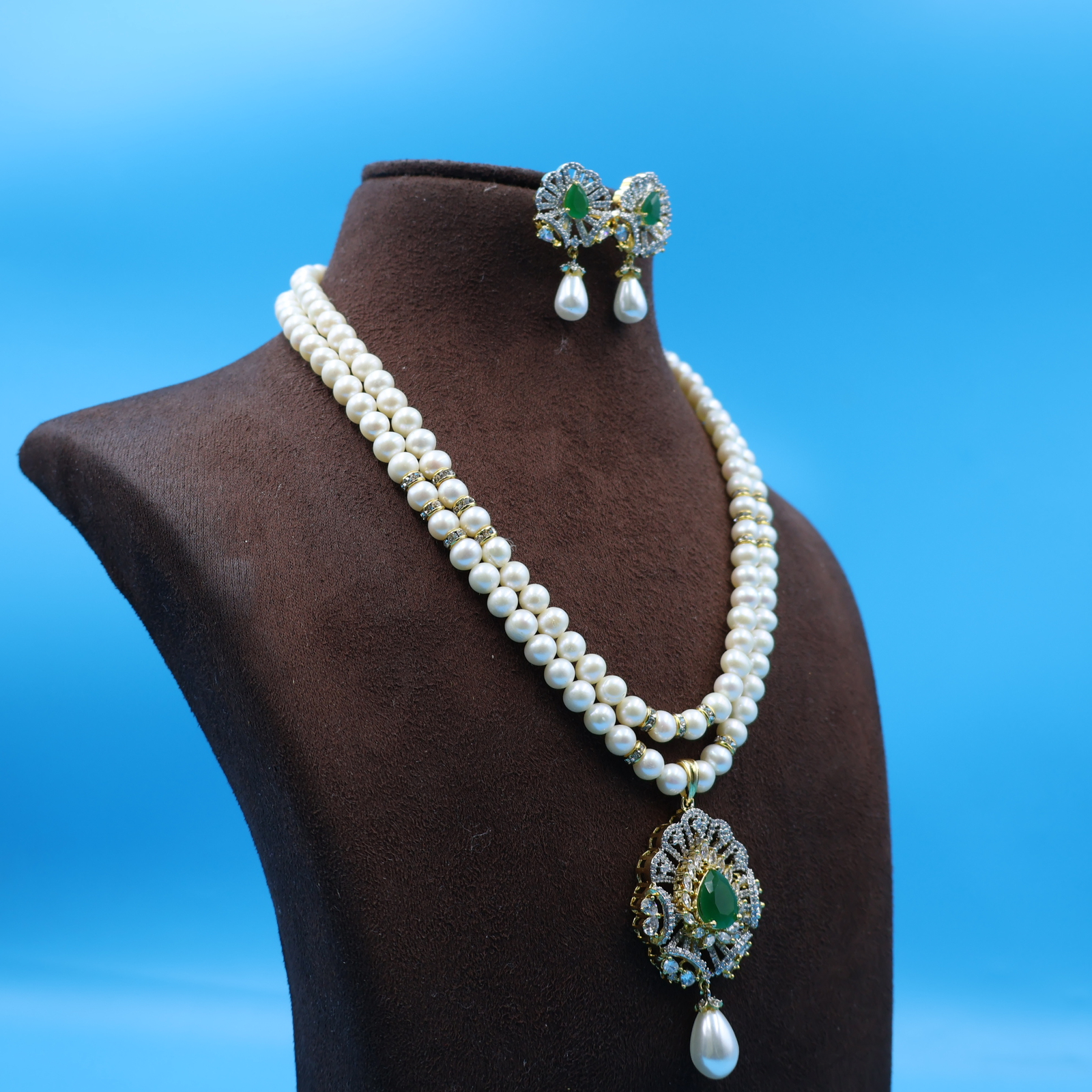 Be the first to review “Two Layer Pendent Pearl Necklace Set”